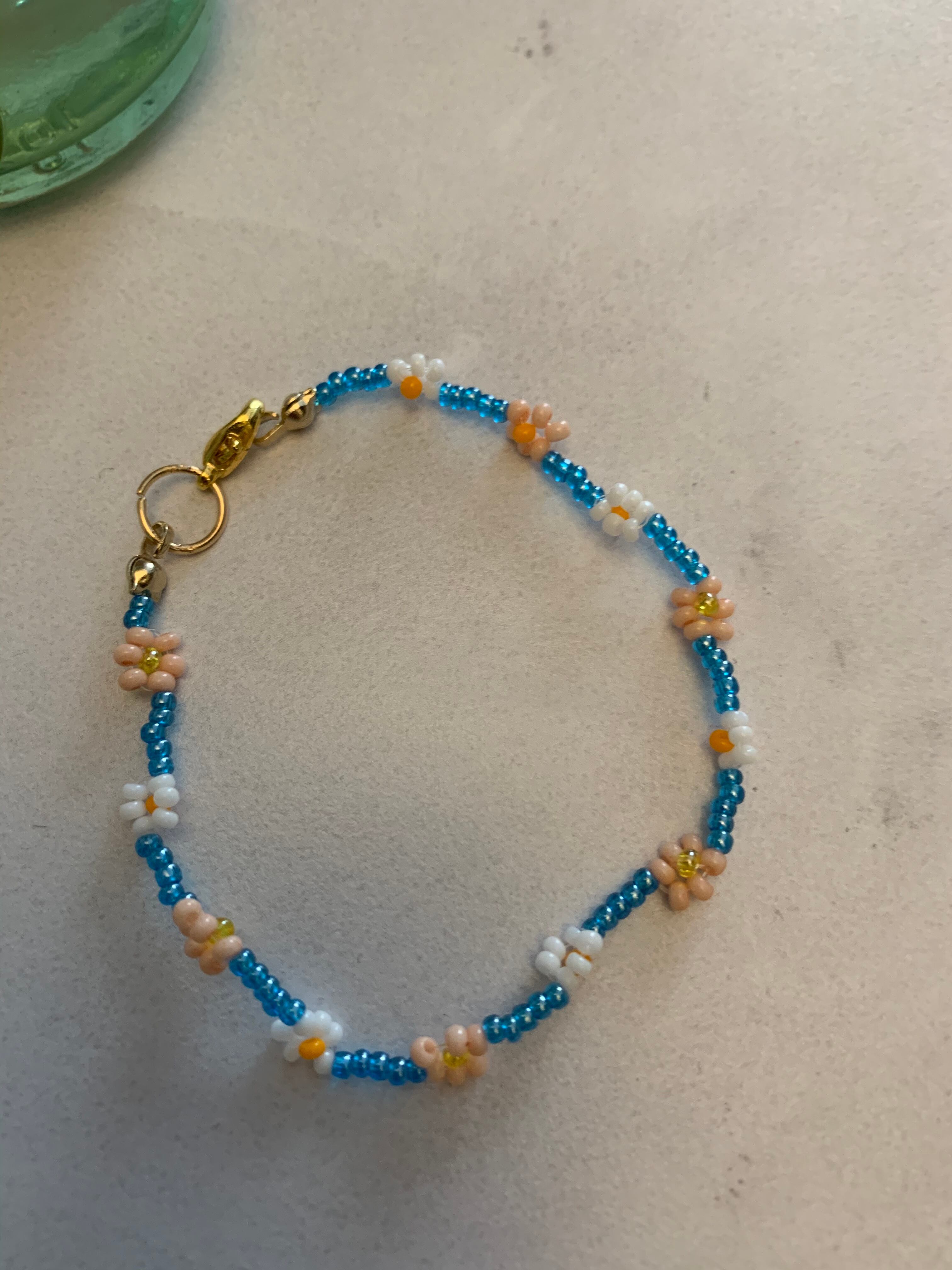ピンク、ブルー、ホワイトのビーズブレスレット