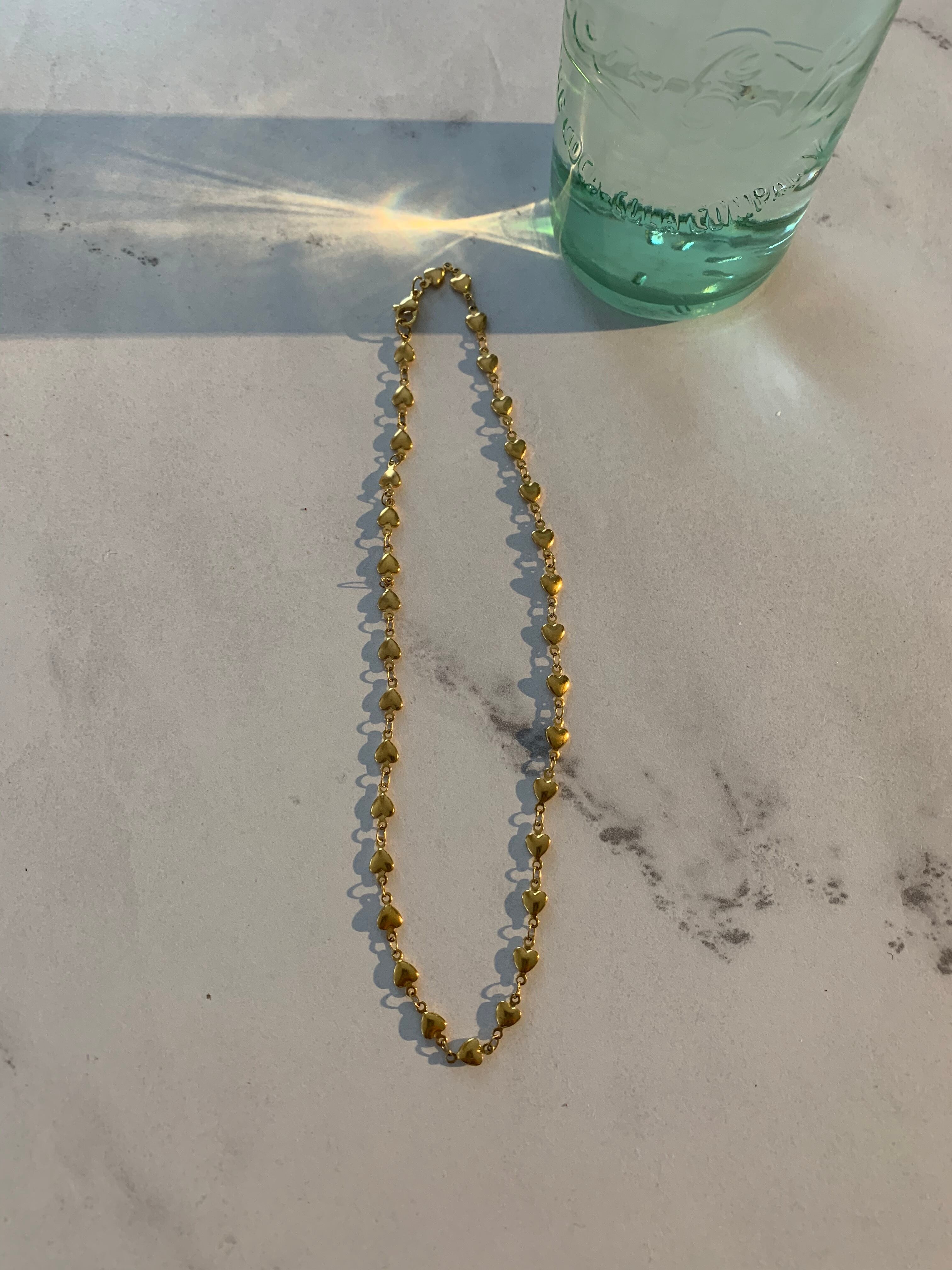 ハートチェーンのネックレスです。ステンレス304を使用しているので色あせせずにアレルギーにも安心な素材です。