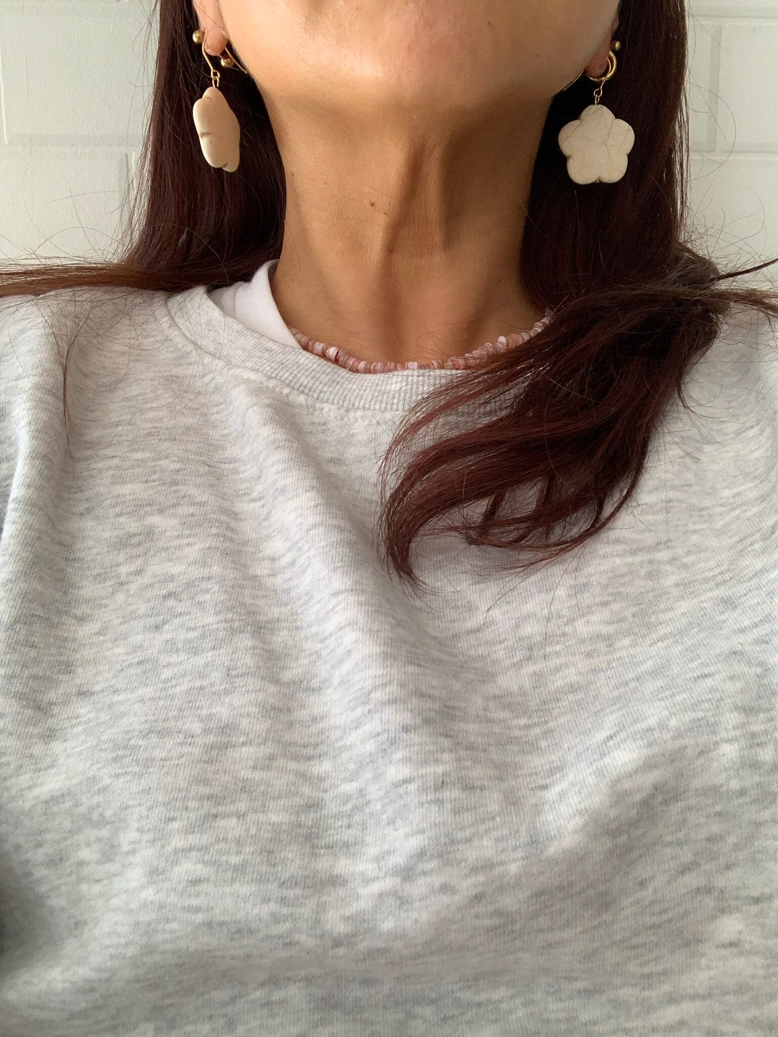 ハートの形をした白いターコイズのピアスです。揺れます。ステンレスを使用しているので変色せずにアレルギーにも安心な素材です。