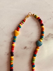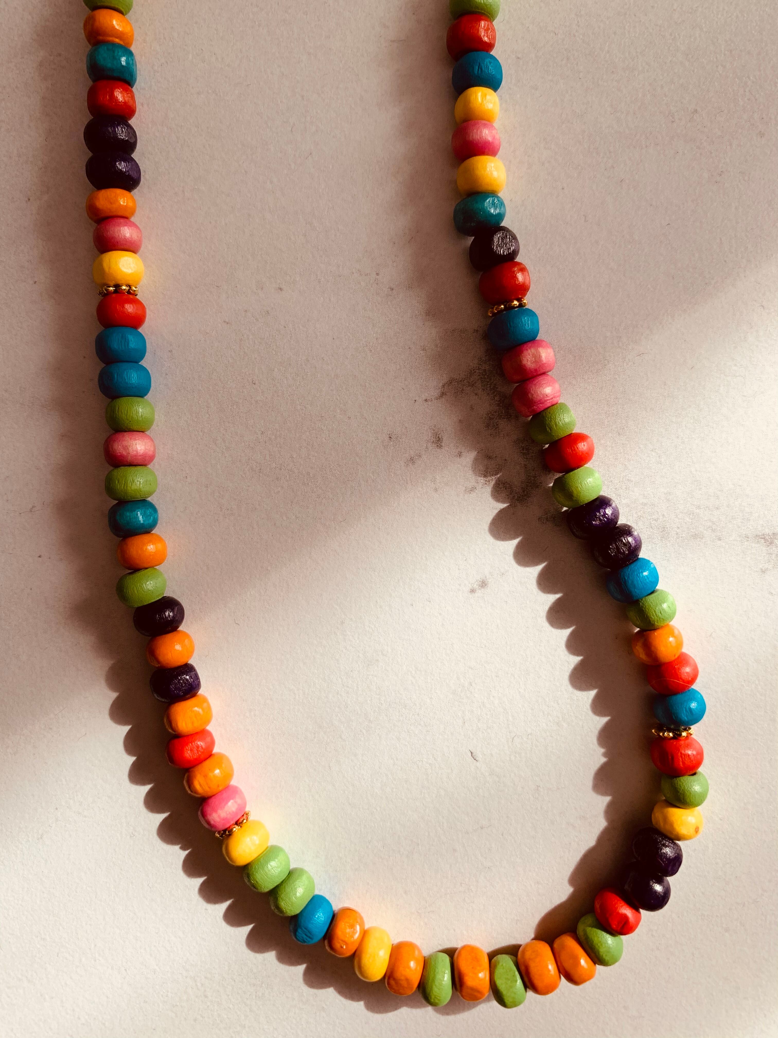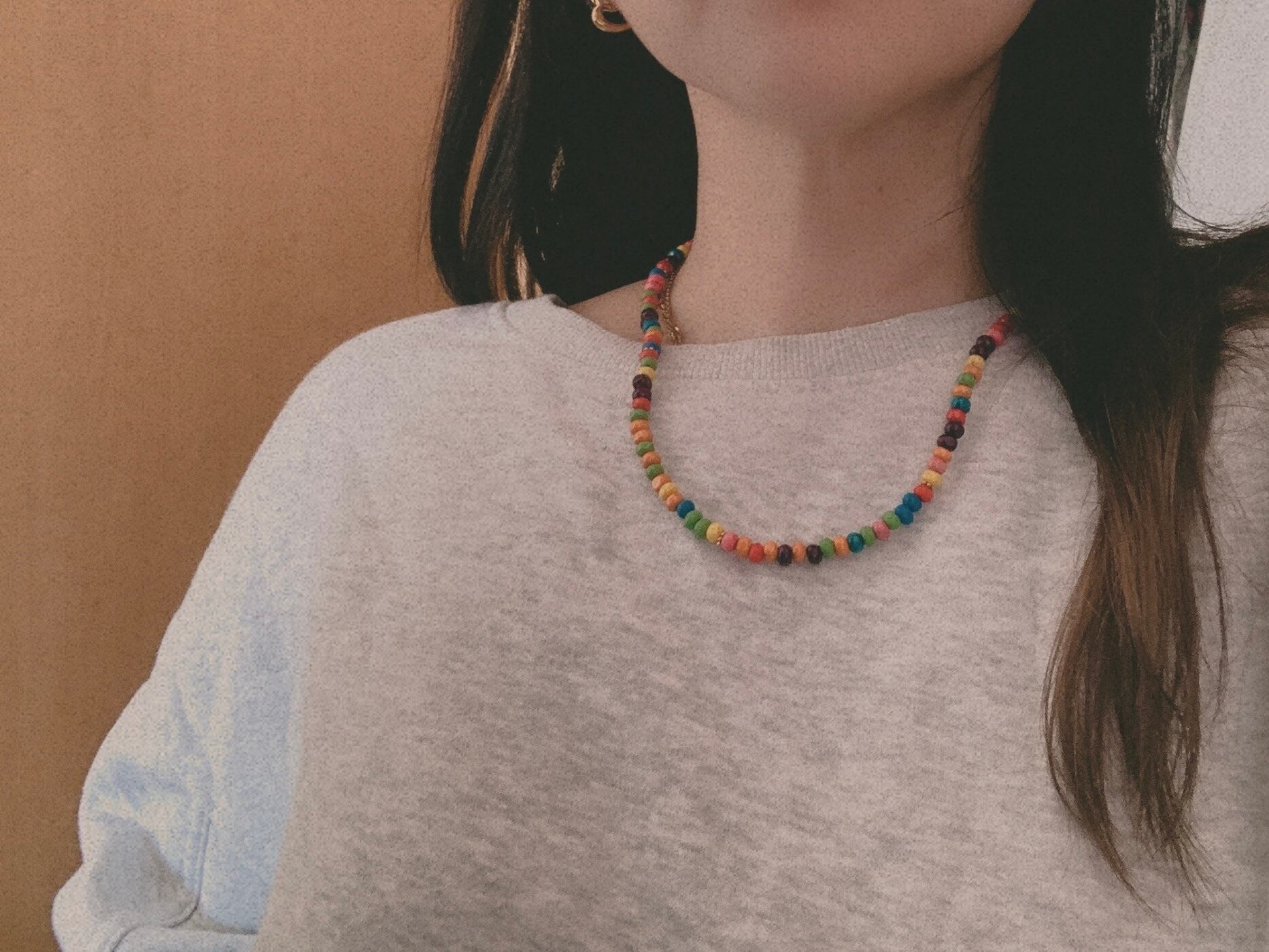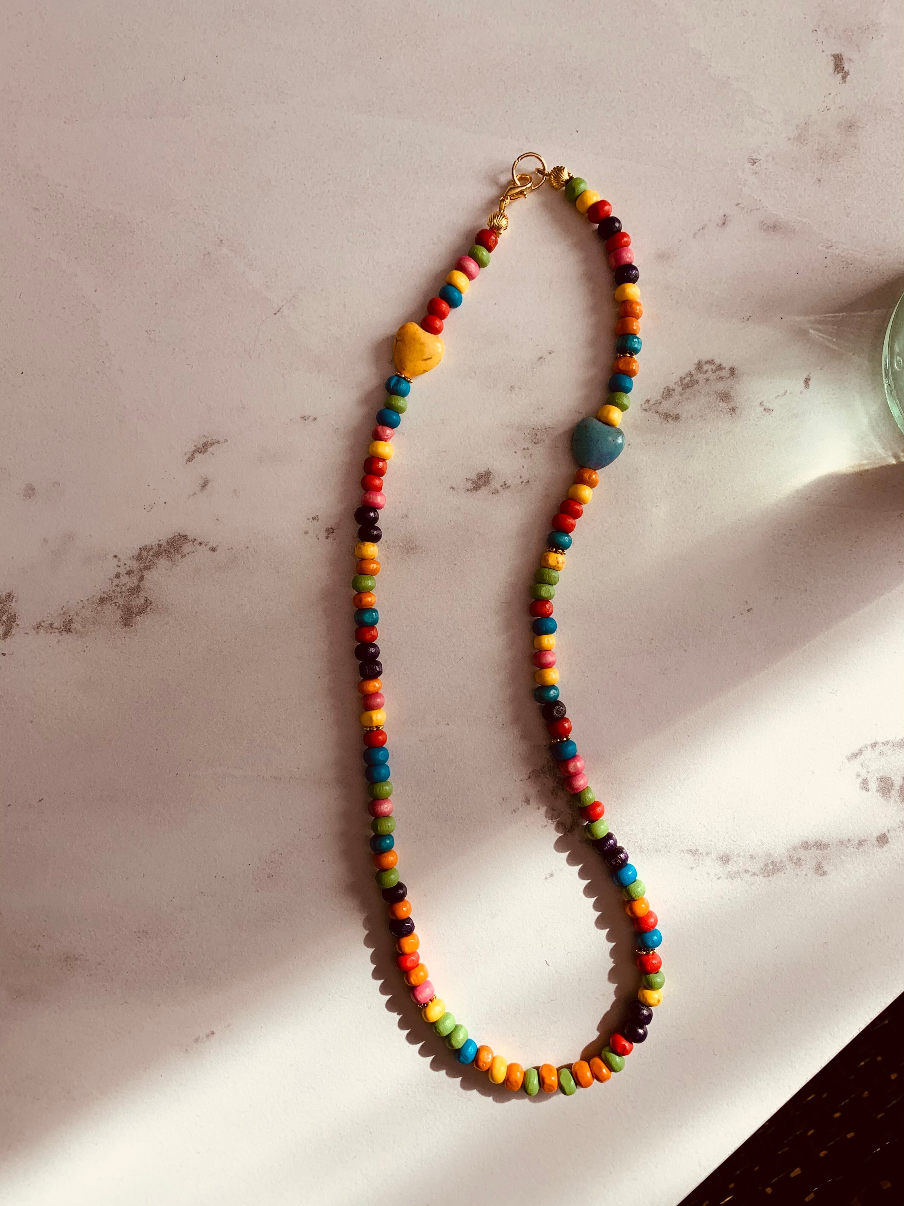 ウッドビーズとハートの形のターコイズでできたネックレスです。