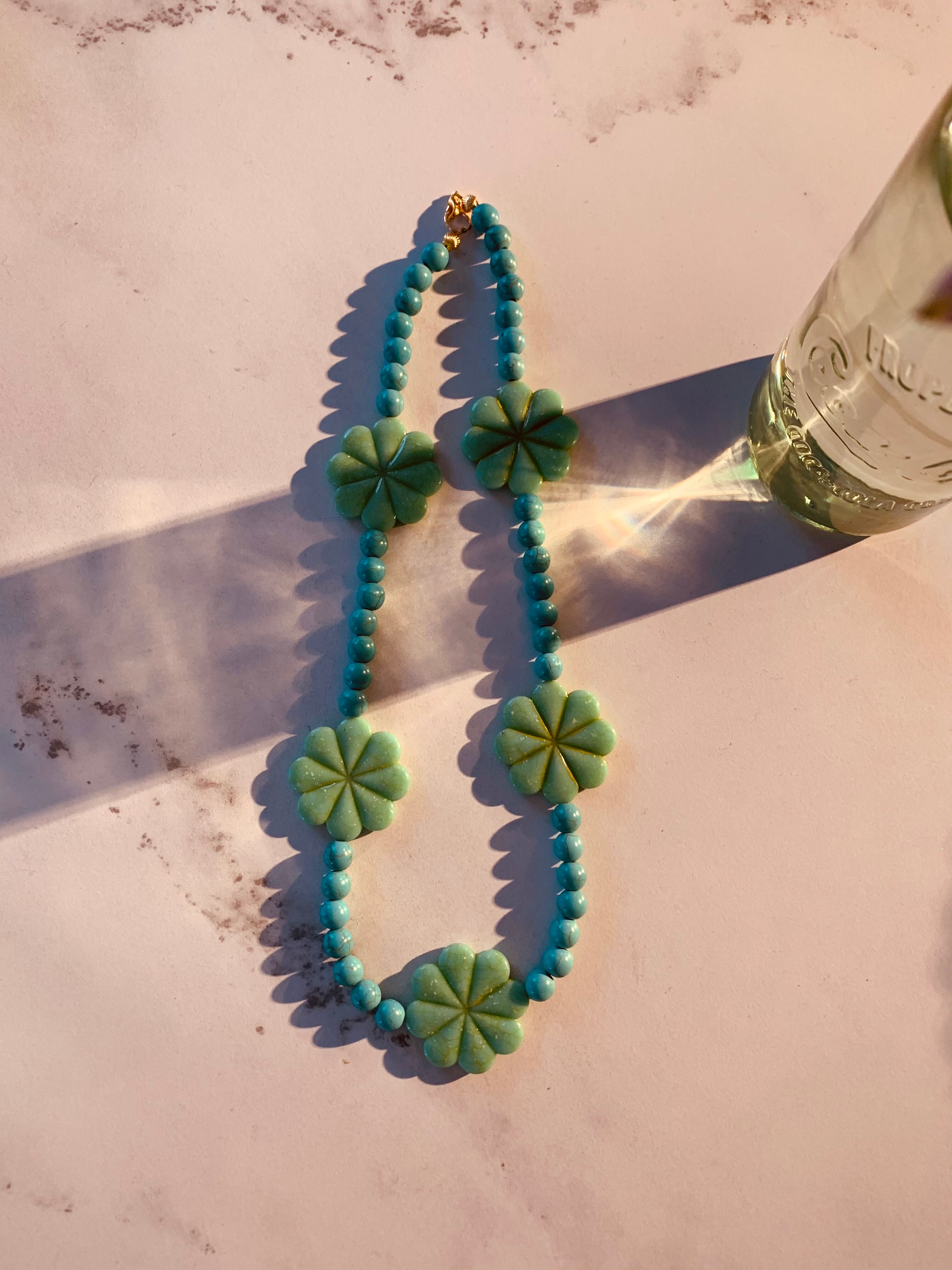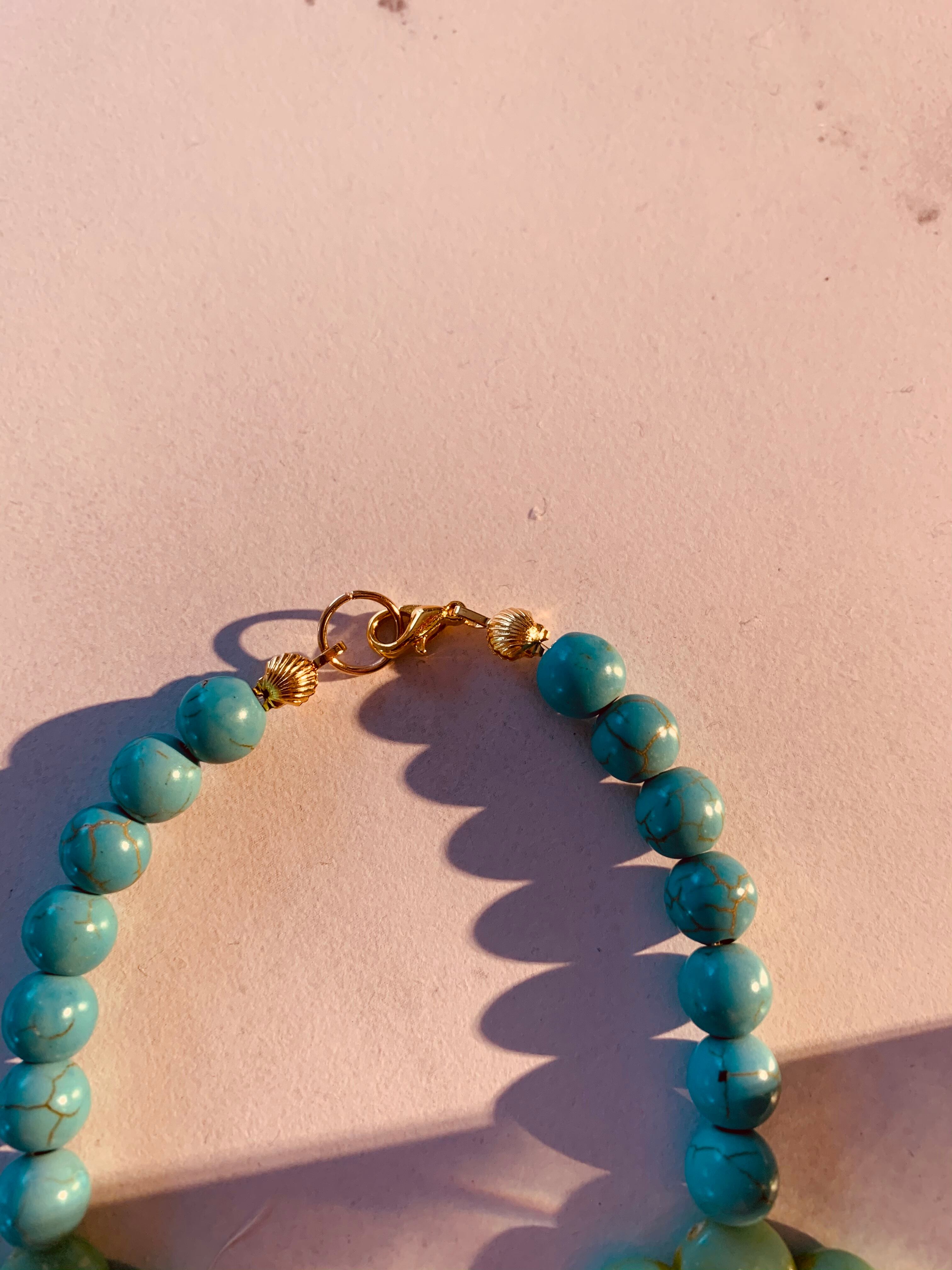 天然石のターコイズのネックレスとアクリルの模造ターコイズのネックレスです。