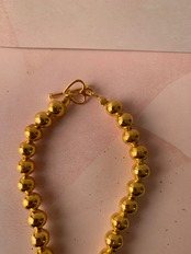 大きなゴールドのハートがついたボールビーズのネックレスです。