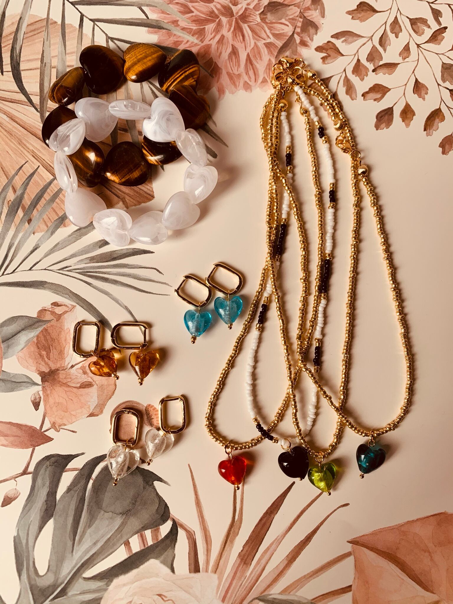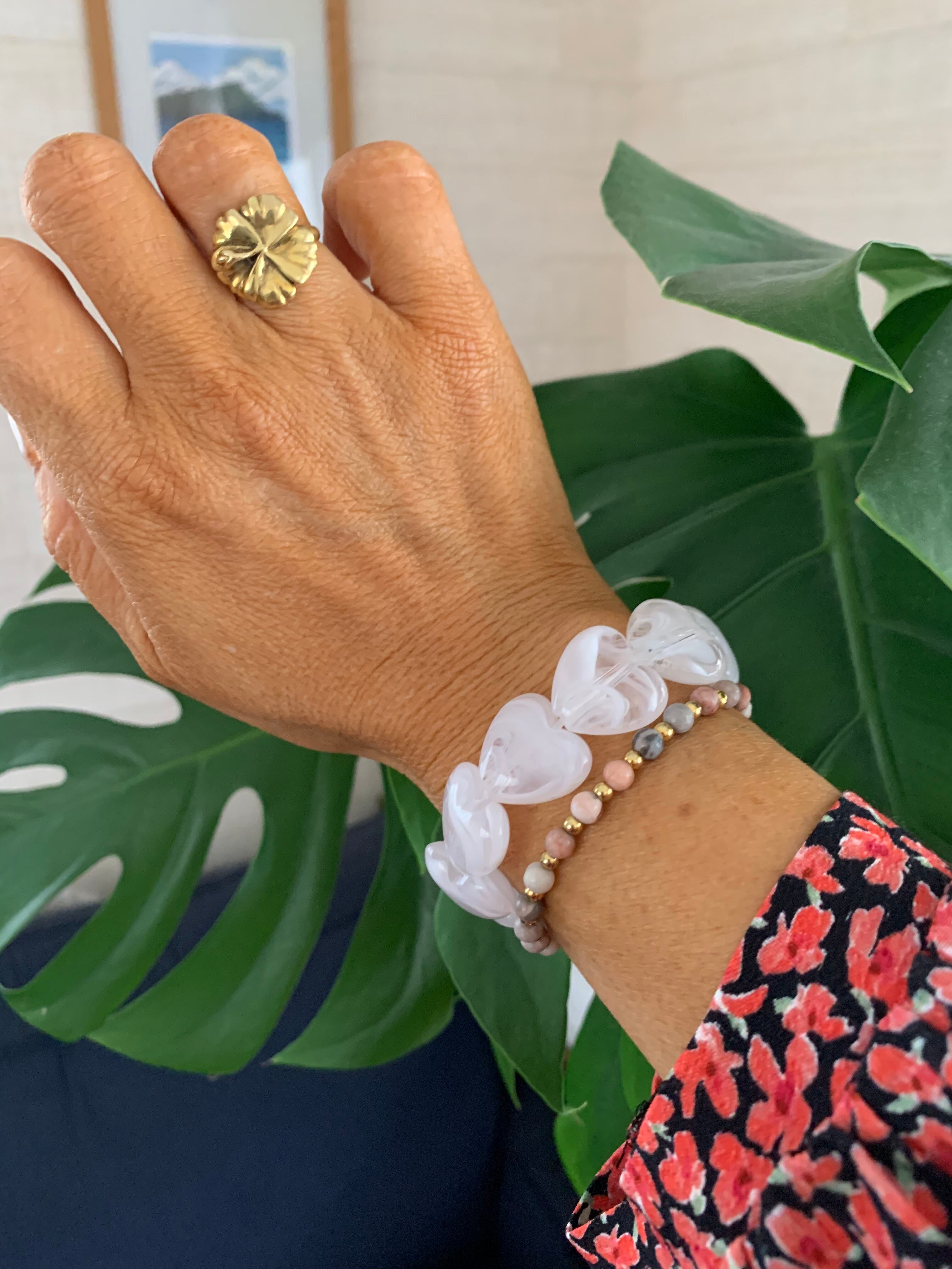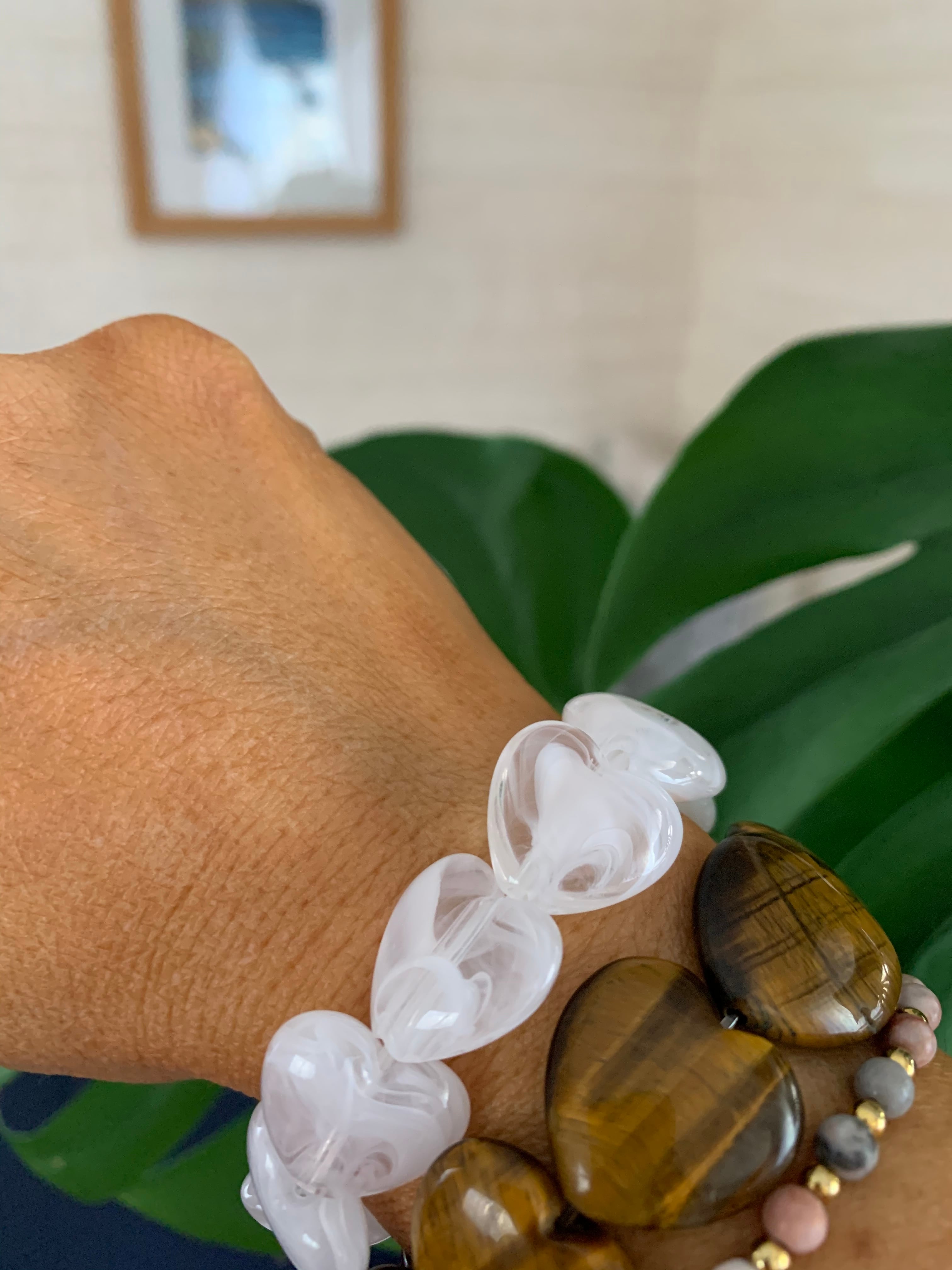アクリルビーズでできた大きなハートのブレスレットです。重ねてつけてもカワイイです。