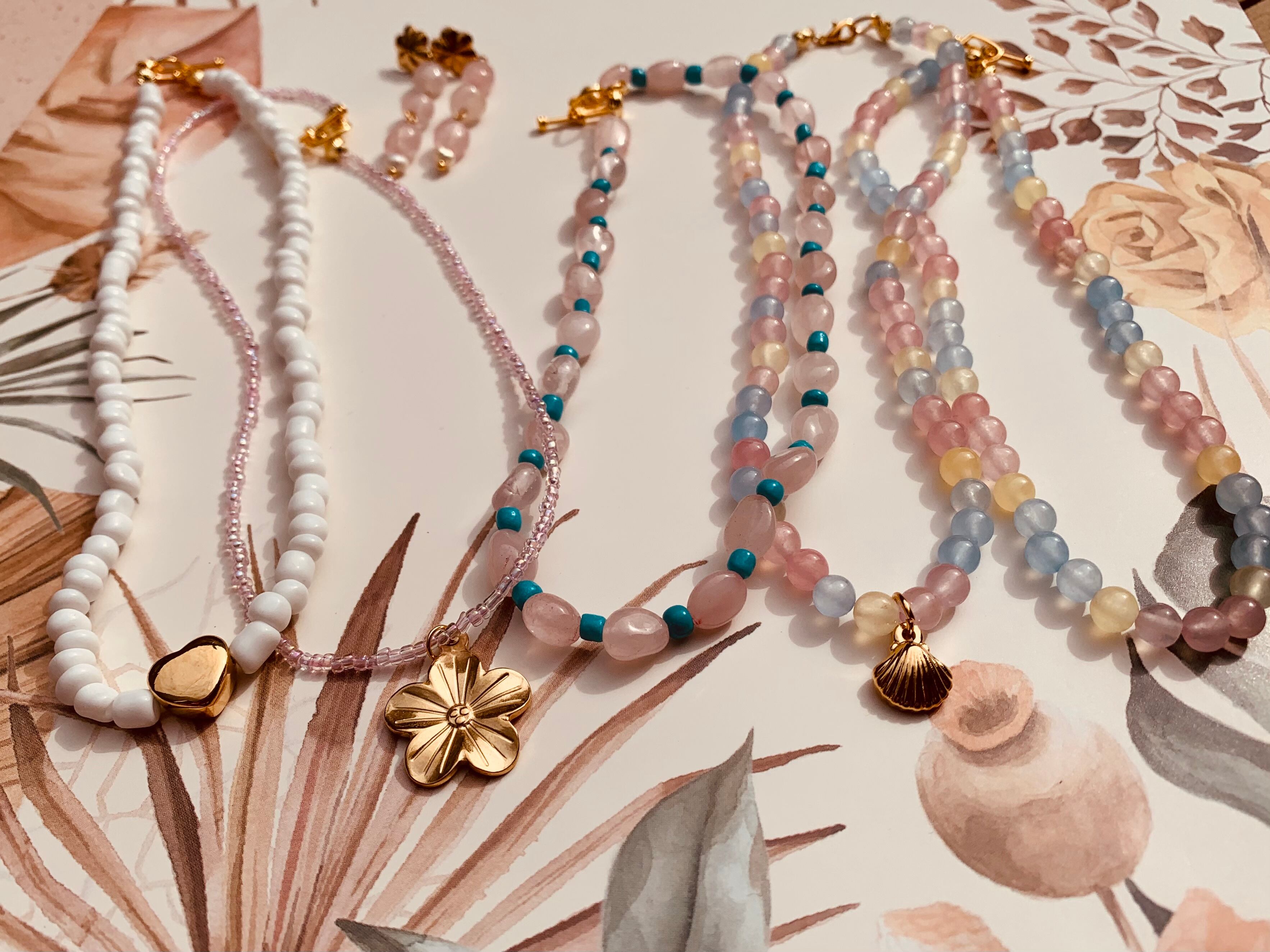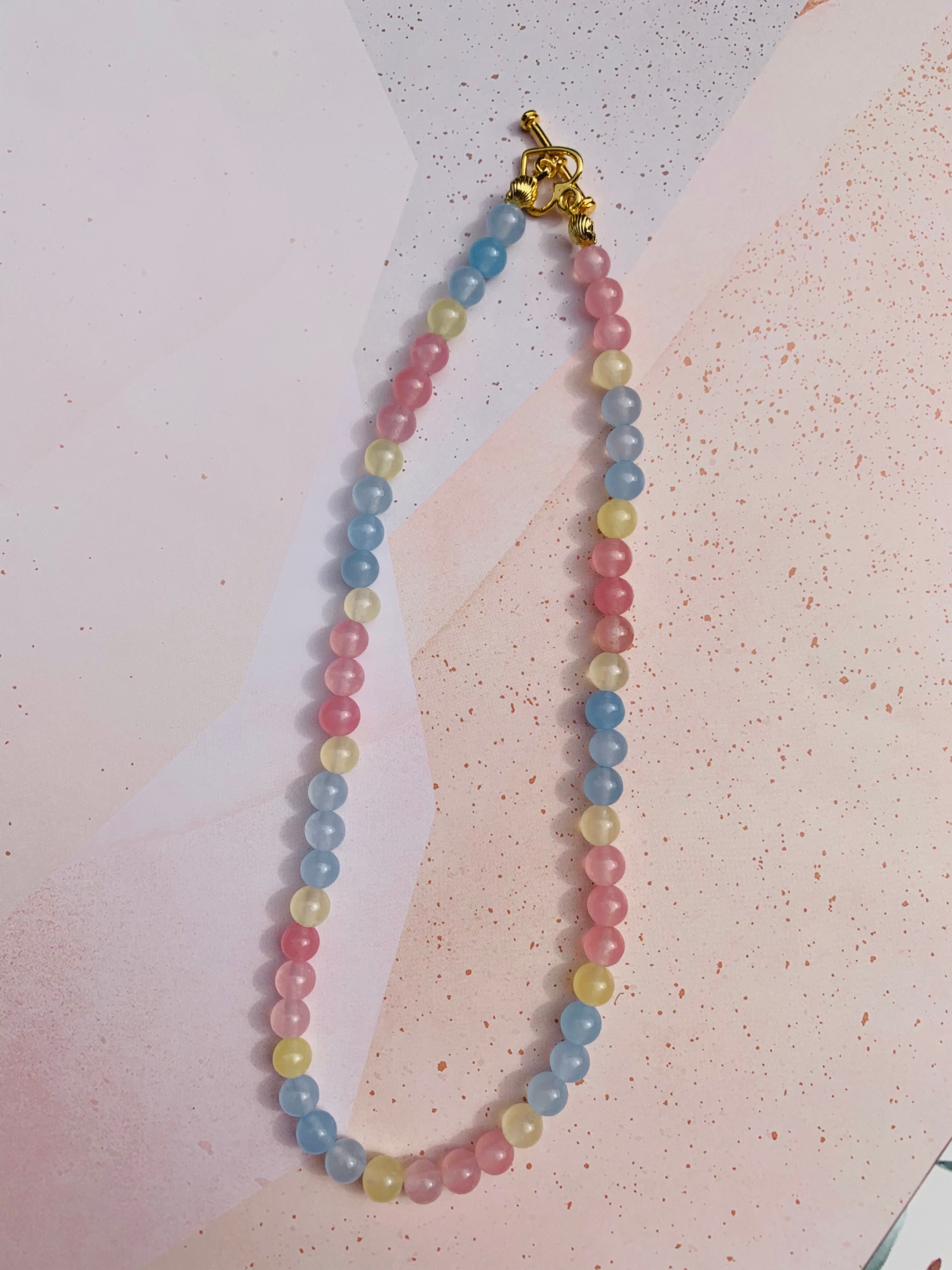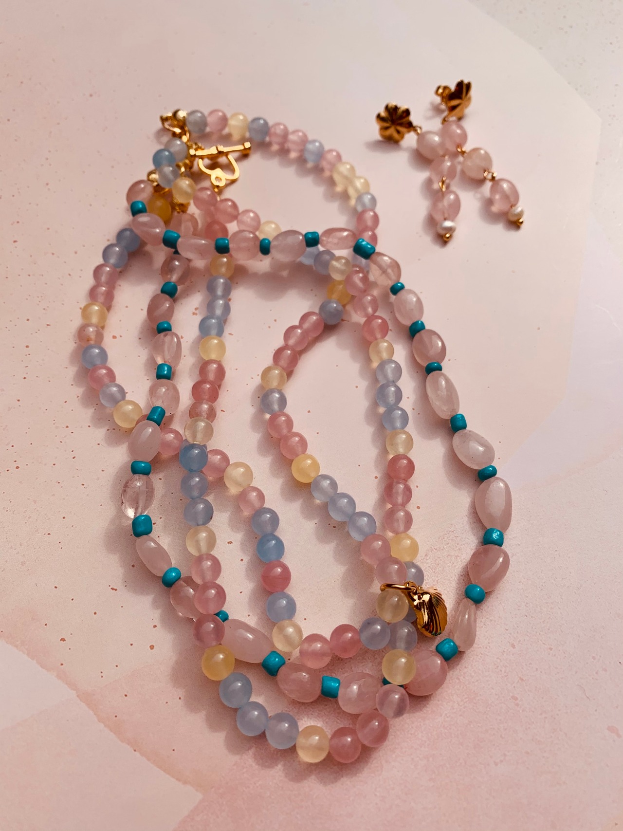 天然モルガナイトのネックレスです。単品でも重ねてつけてもかわいいです。