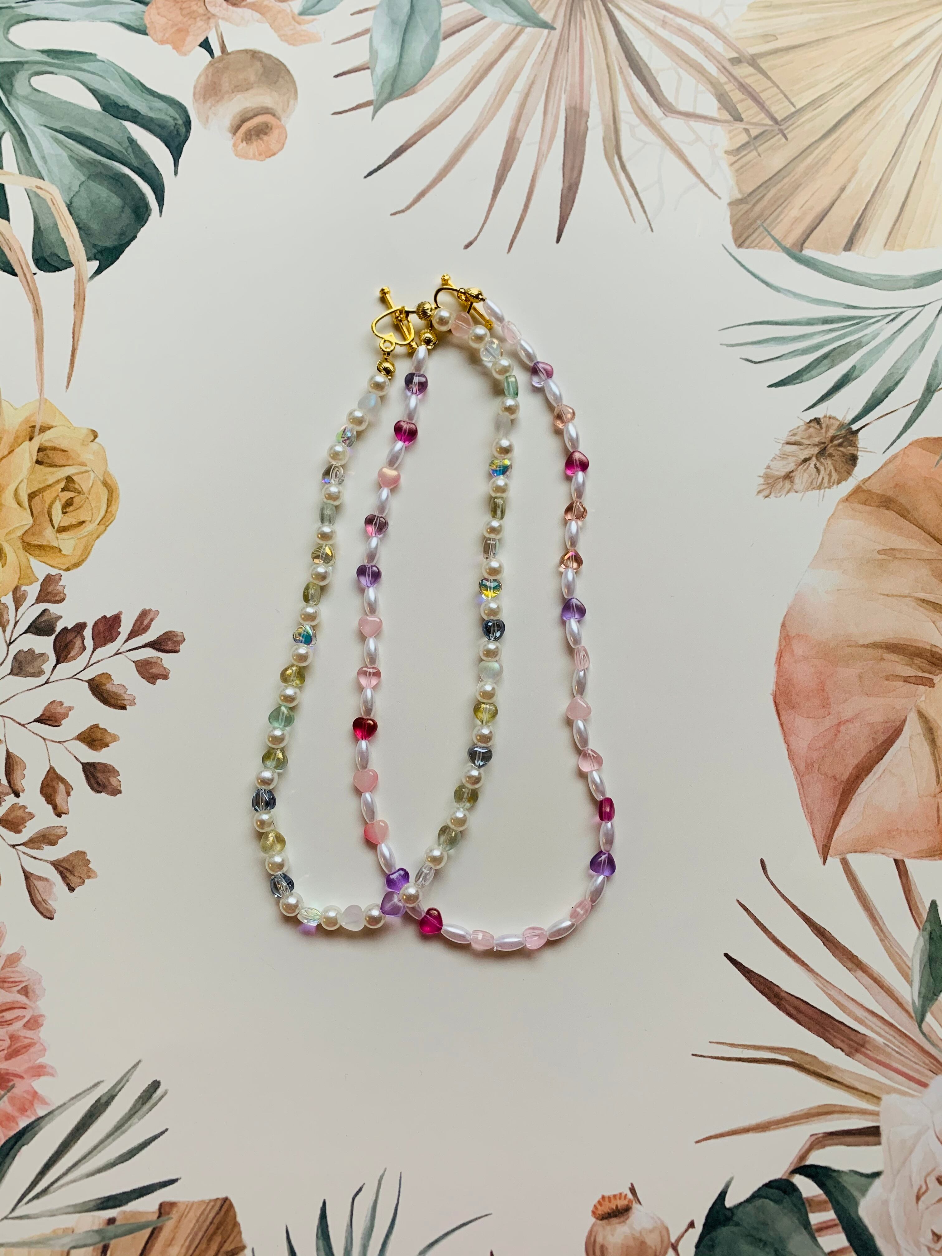 クリアなハートとパールビーズのネックレスです。A.Bからお選びください。