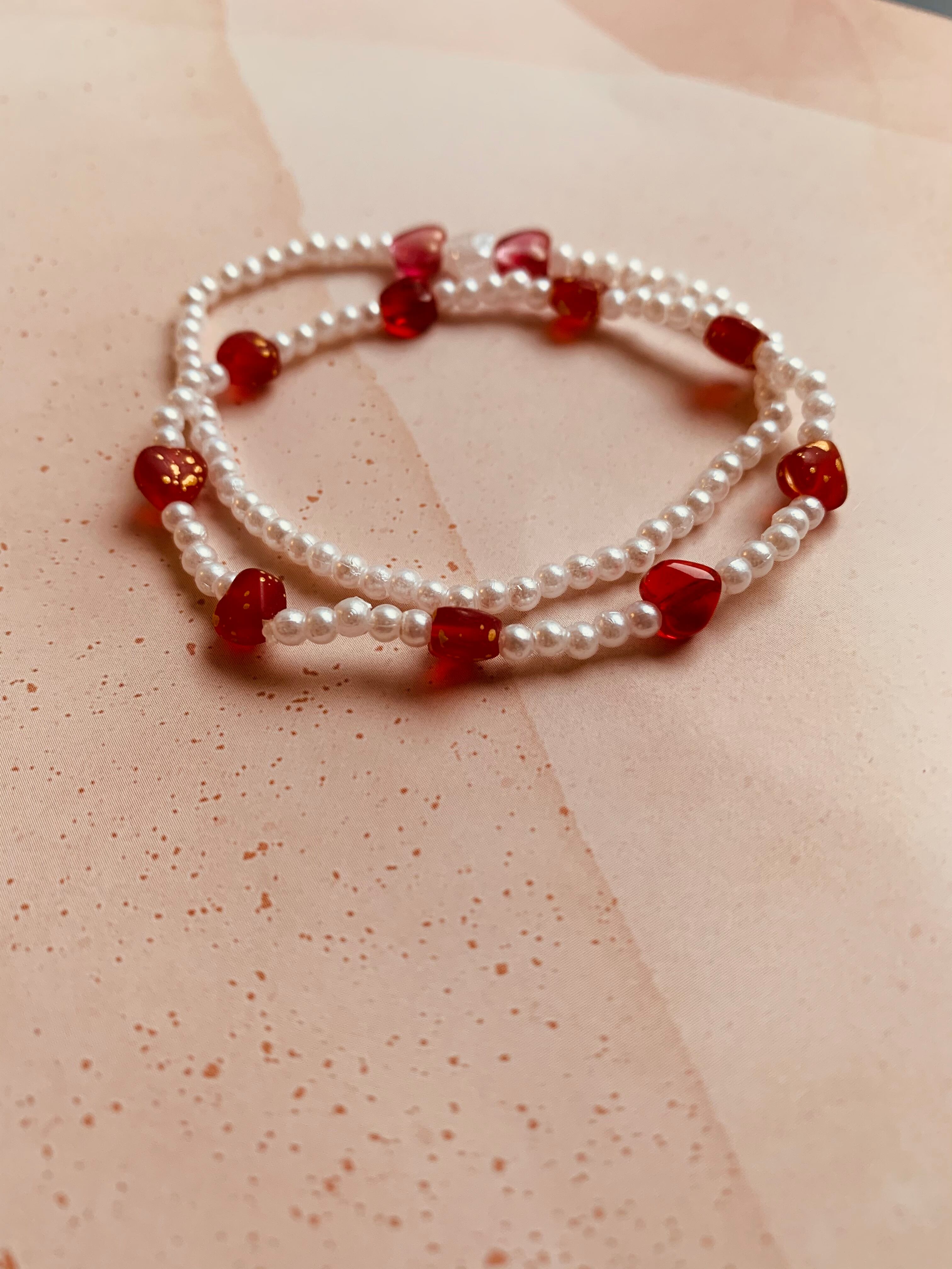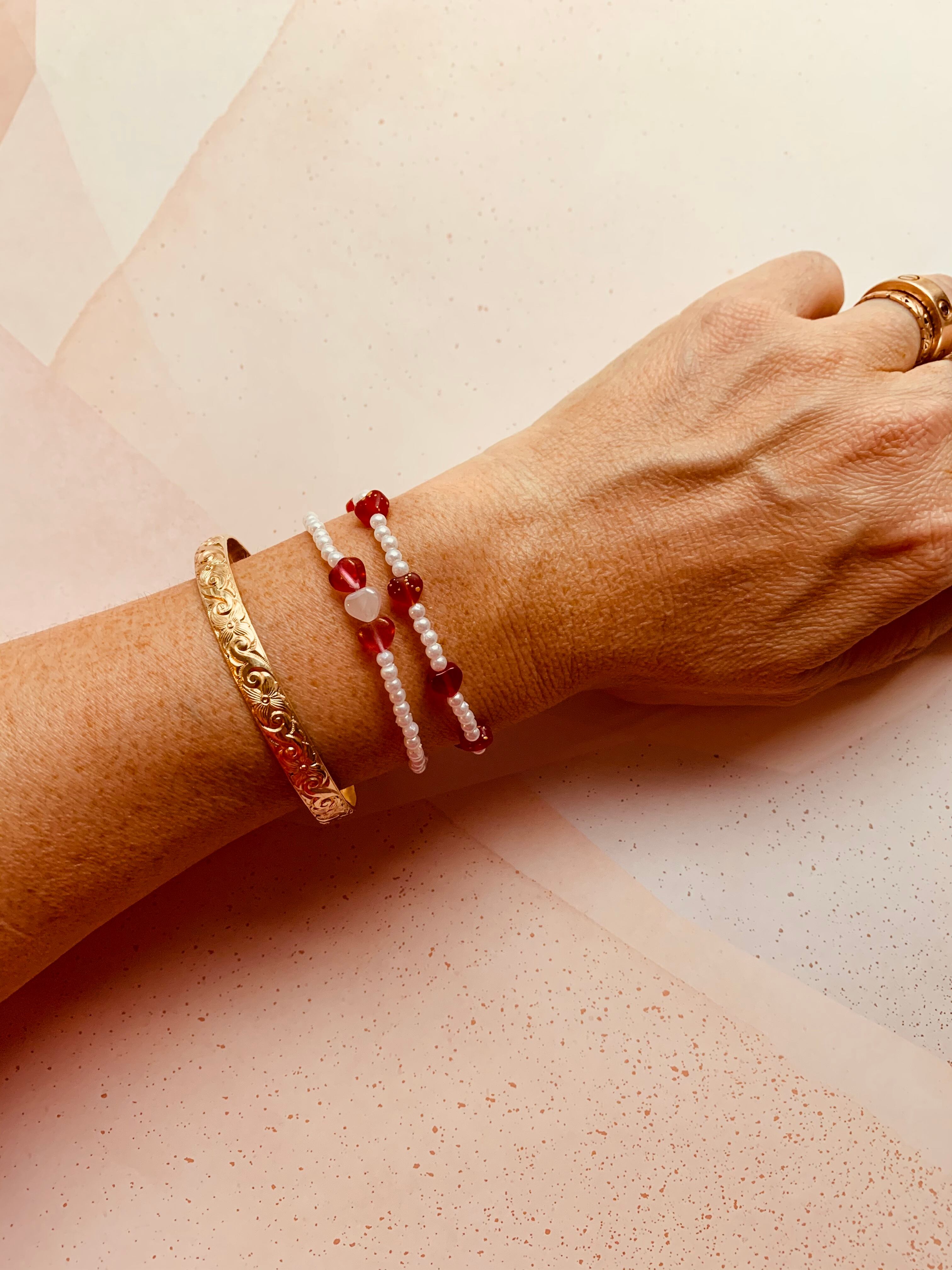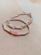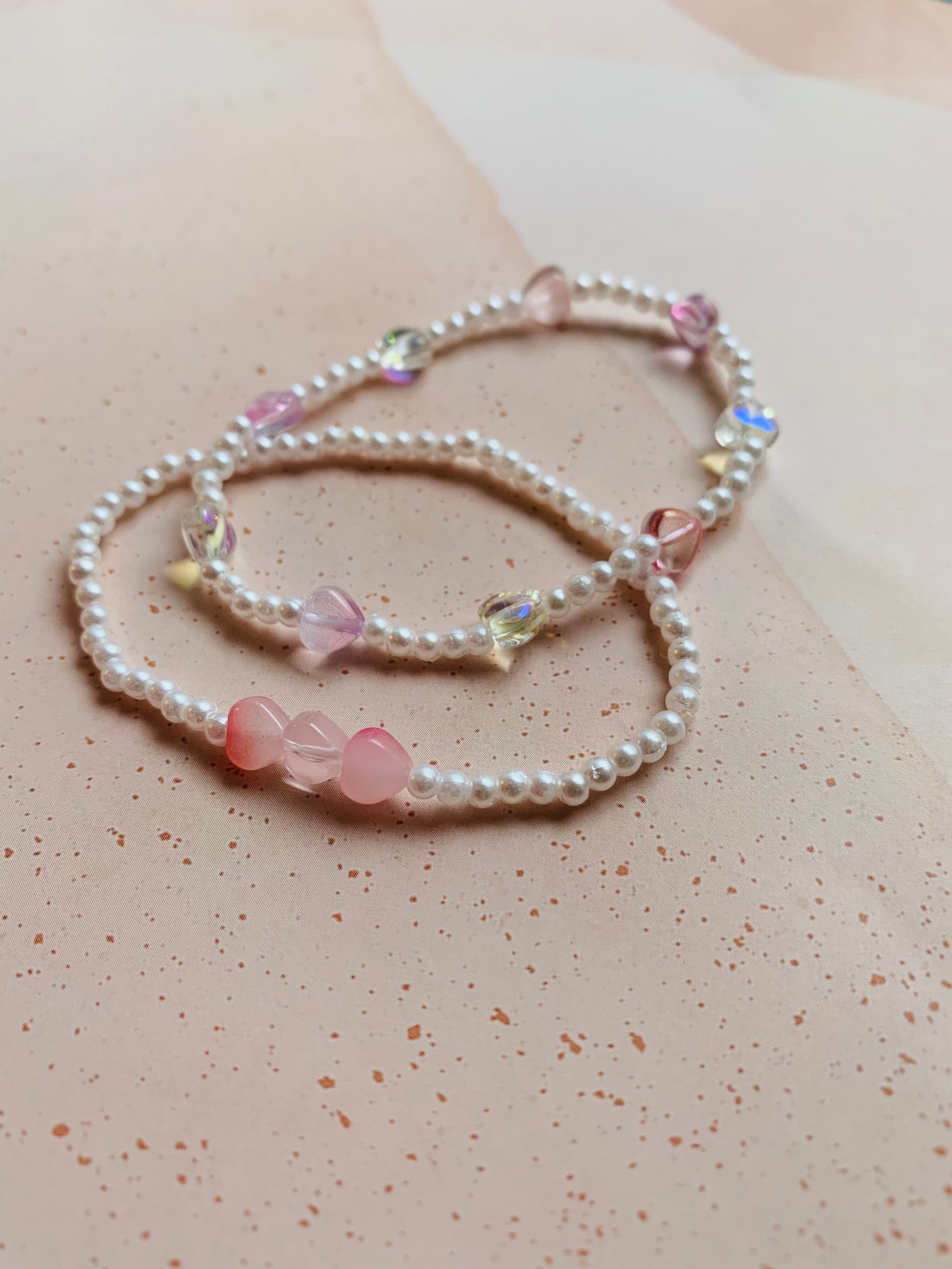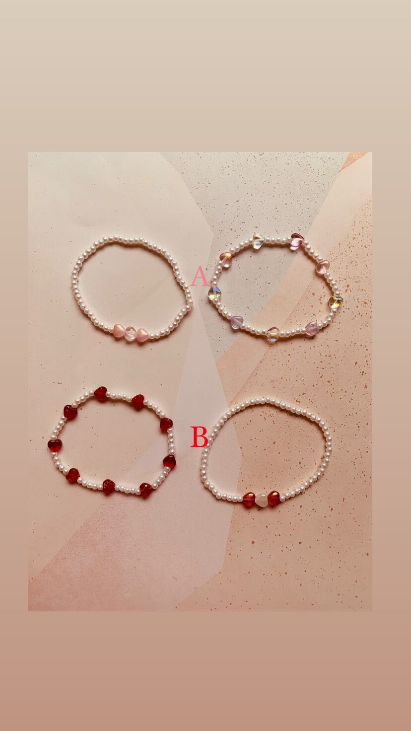 ハートとパールビーズのブレスレットです。2個セットです。A.Bからお選びください。