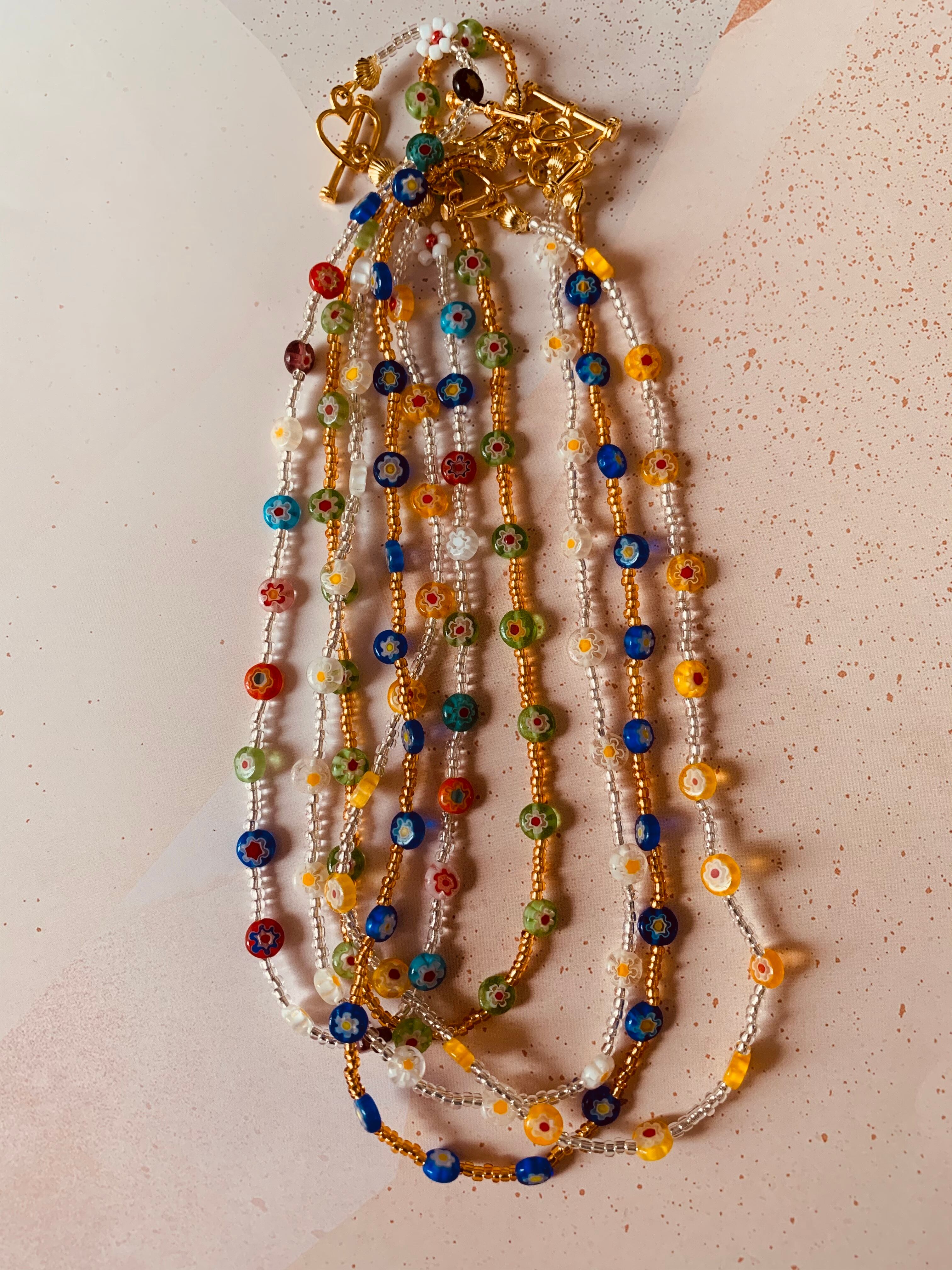 ミッレフィオーリガラスとビーズのネックレスです。A.B.C.D.Eからお選びください。