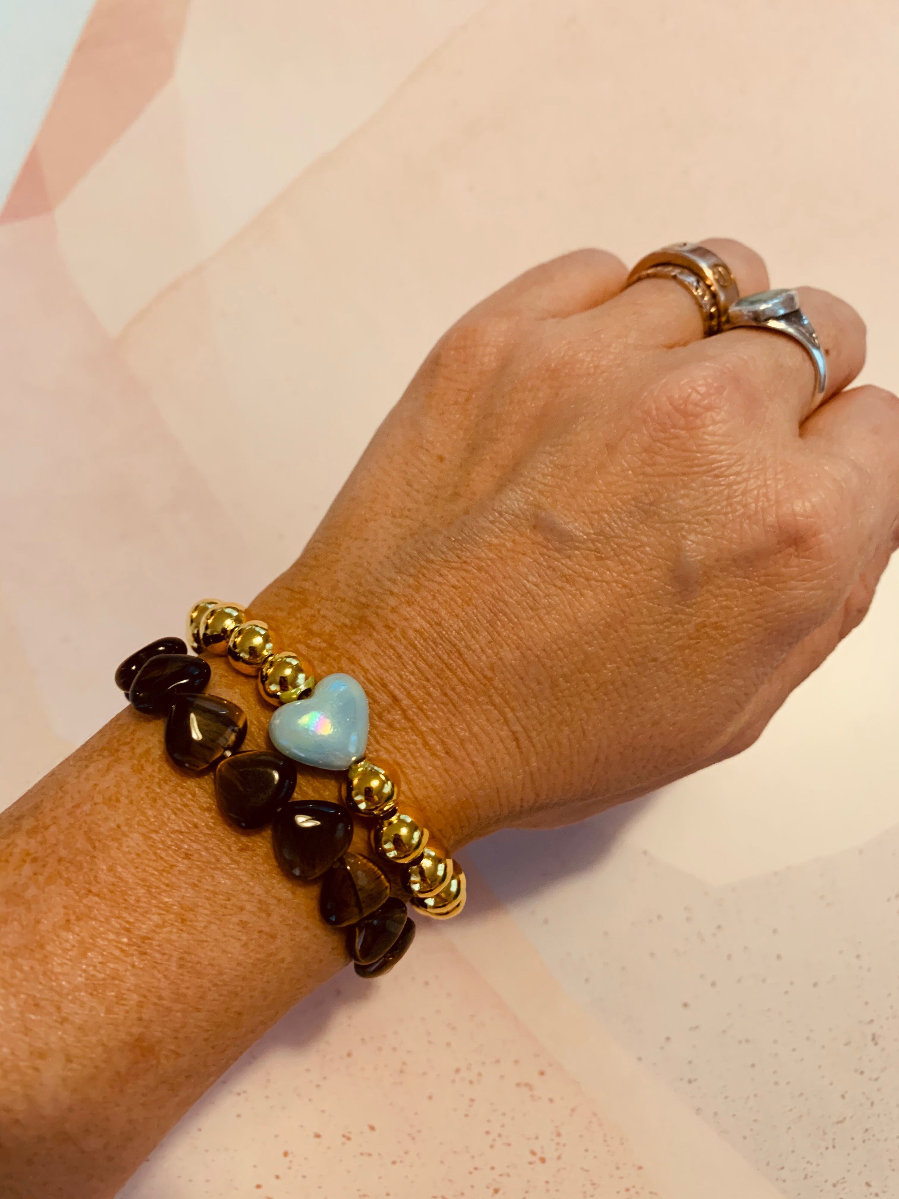 ハートが付いたゴールドのボールビーズのブレスレットです。A.B.C.Dからお選びください。
