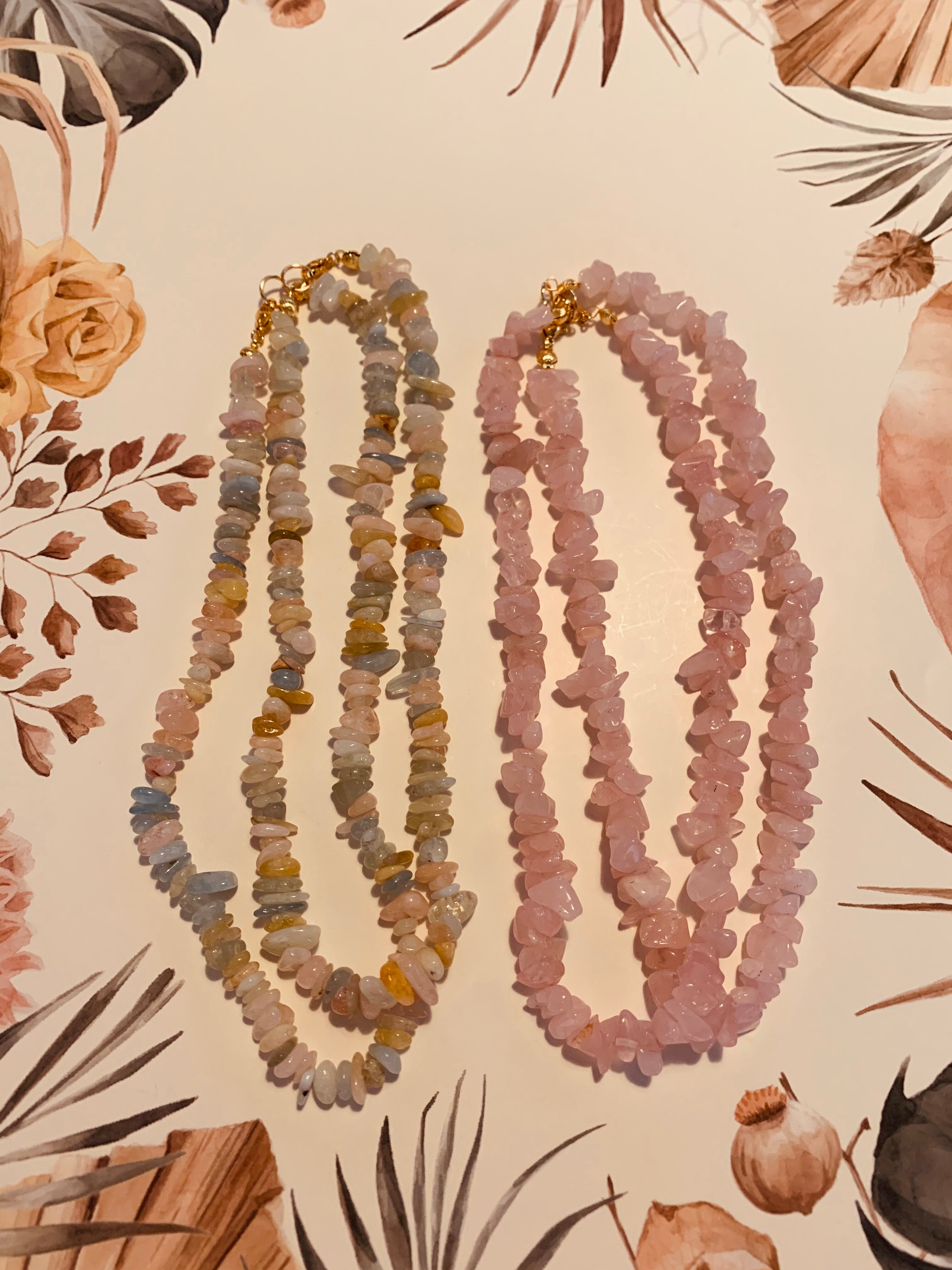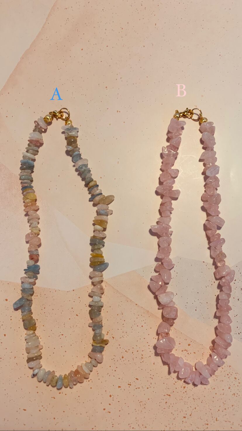 ローズクォーツ&モルガナイトのネックレス