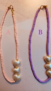 ハートの形のパールビーズが付いたヒシビーズのネックレスです。A.Bからお選びください。