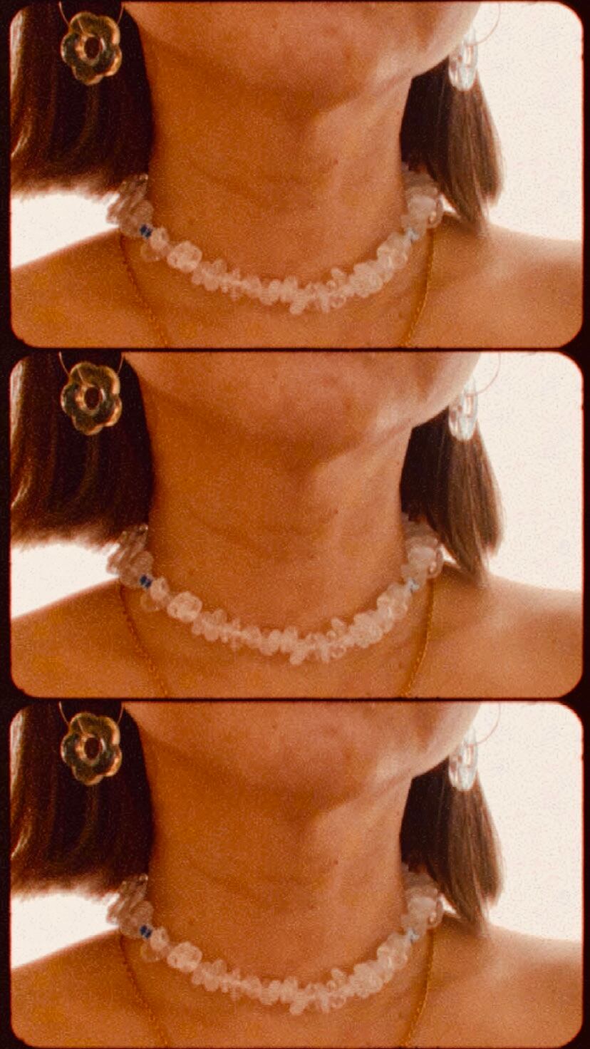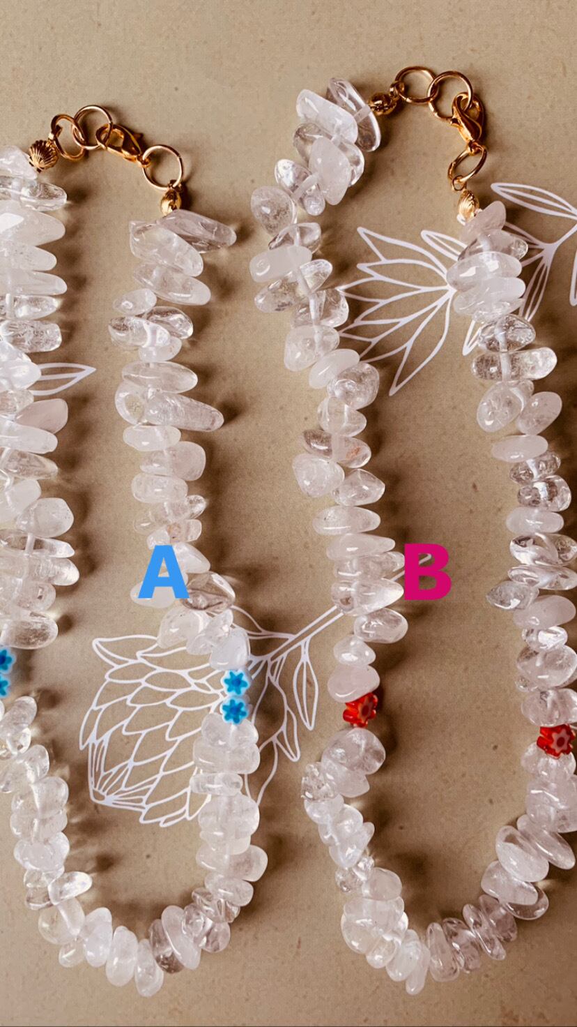 天然クリスタルにお花ビーズが付いたネックレスです。