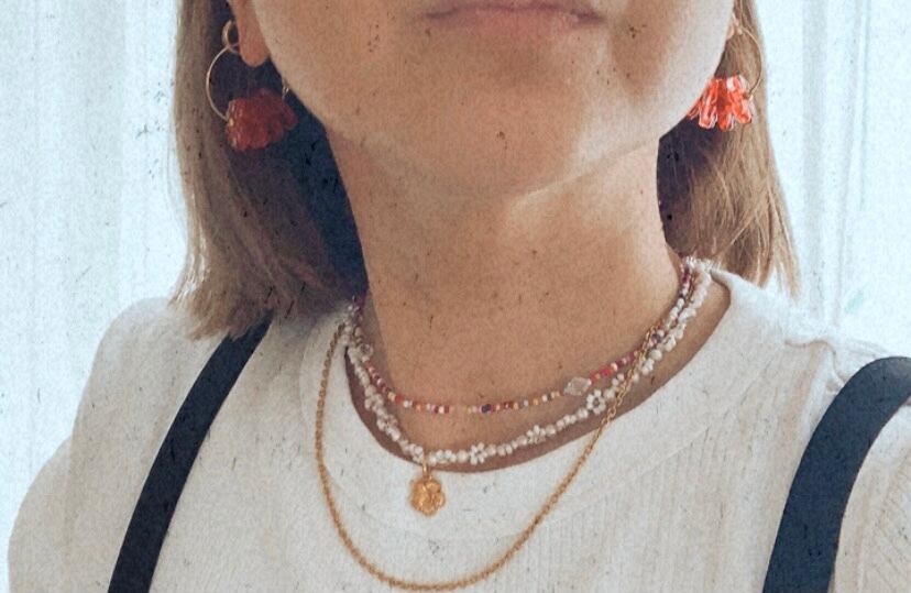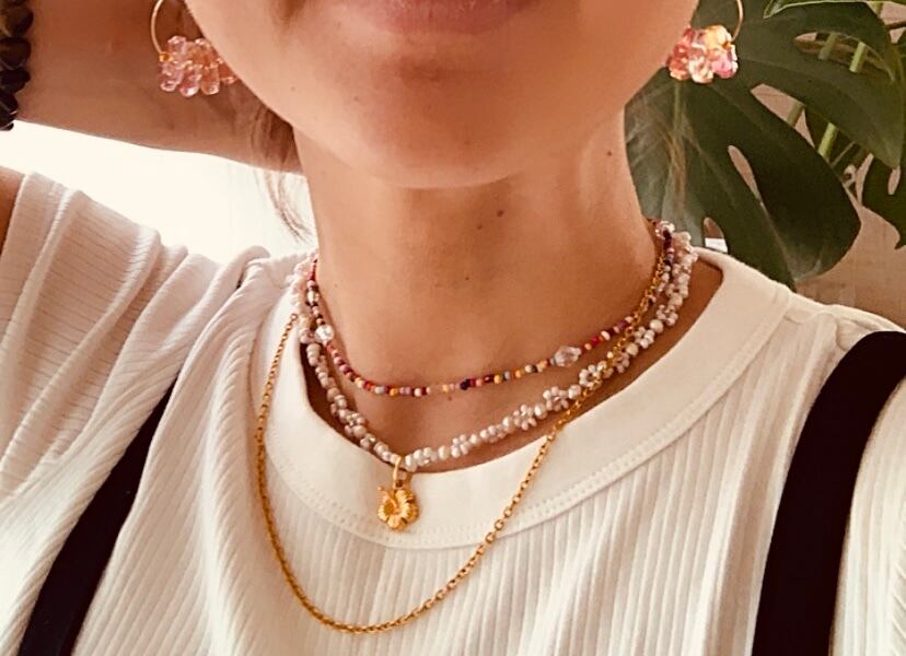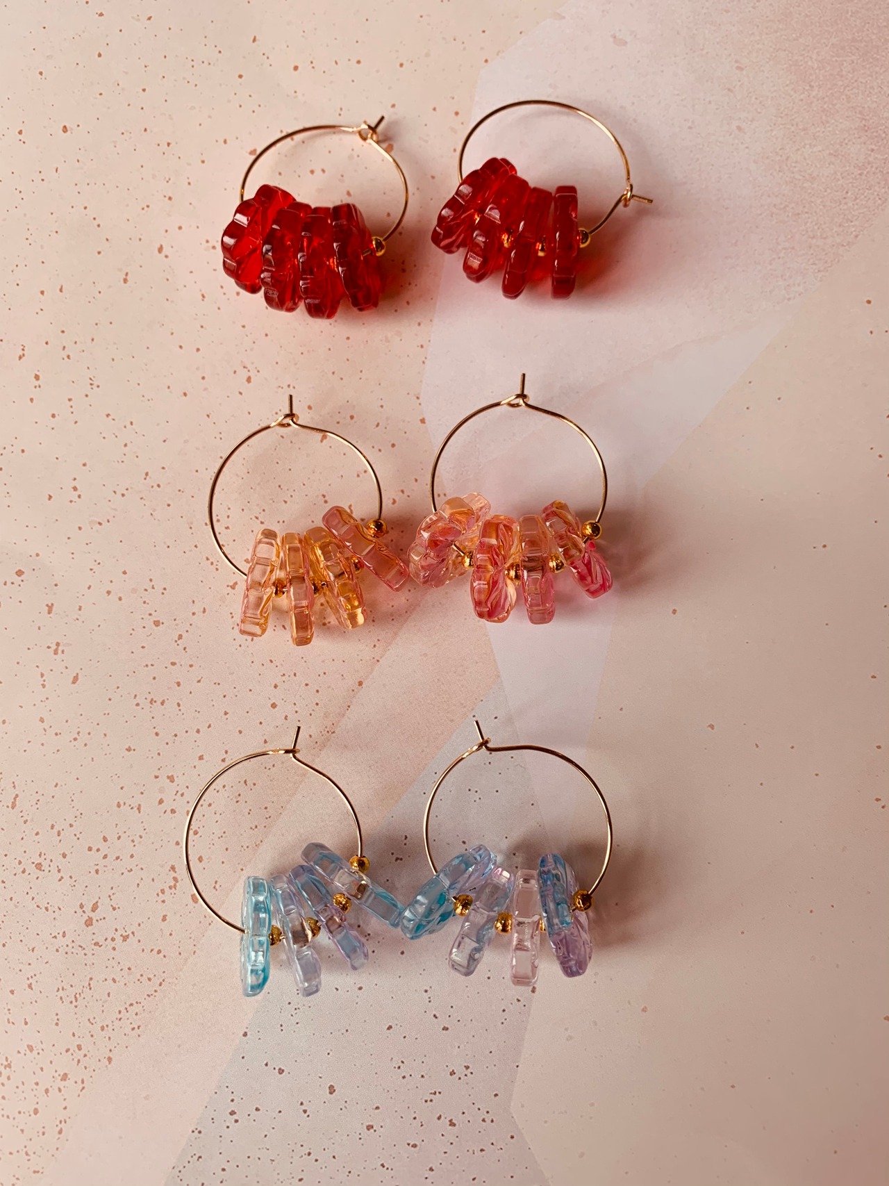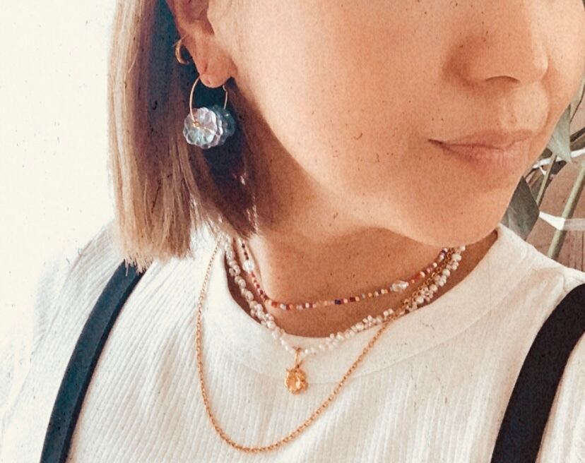クリアなお花が4つ連なったフープピアスです。A.B.Cからお選びください。