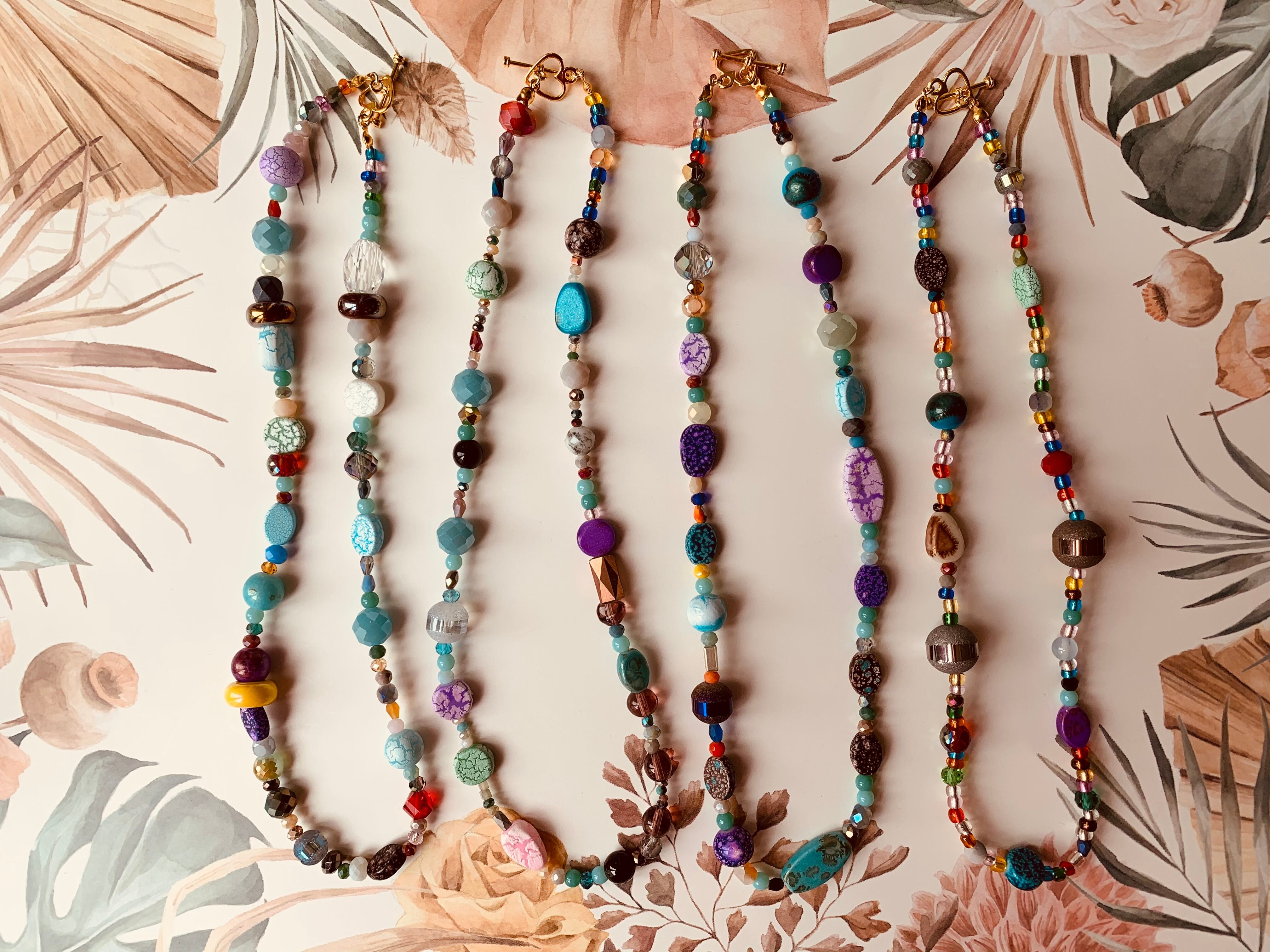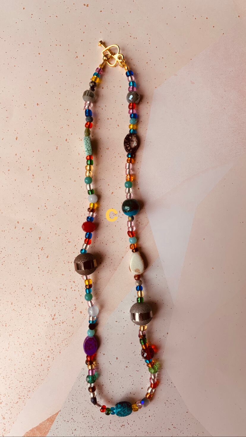 色々ビーズとストーンのネックレス