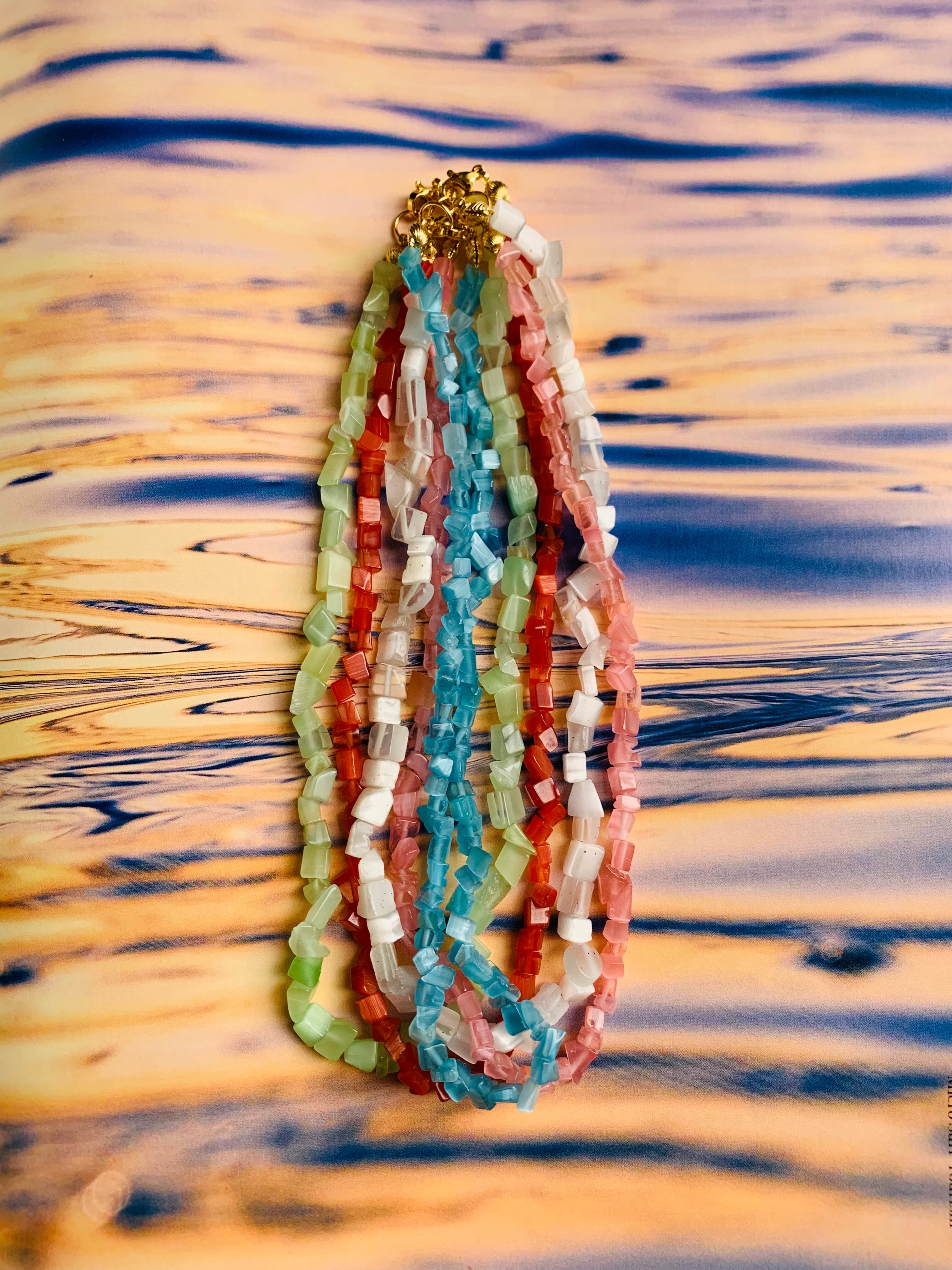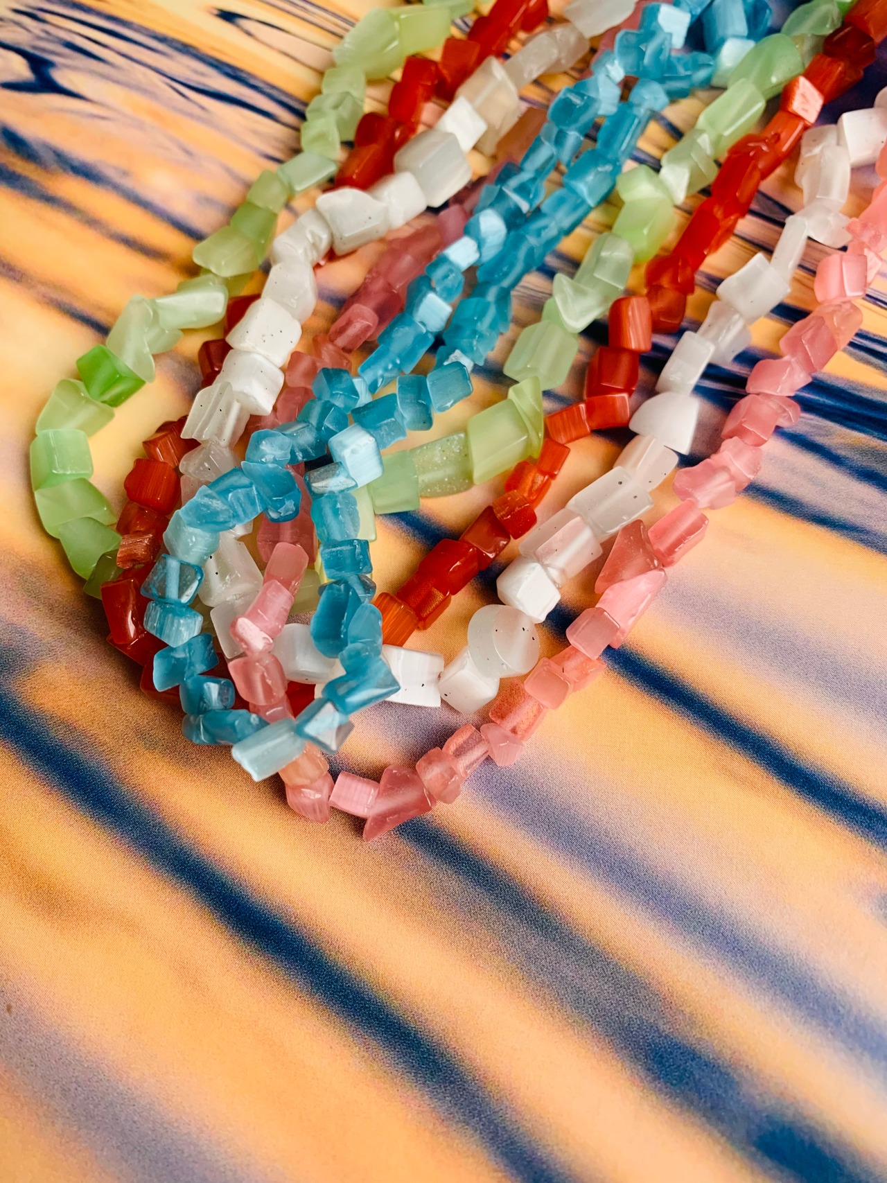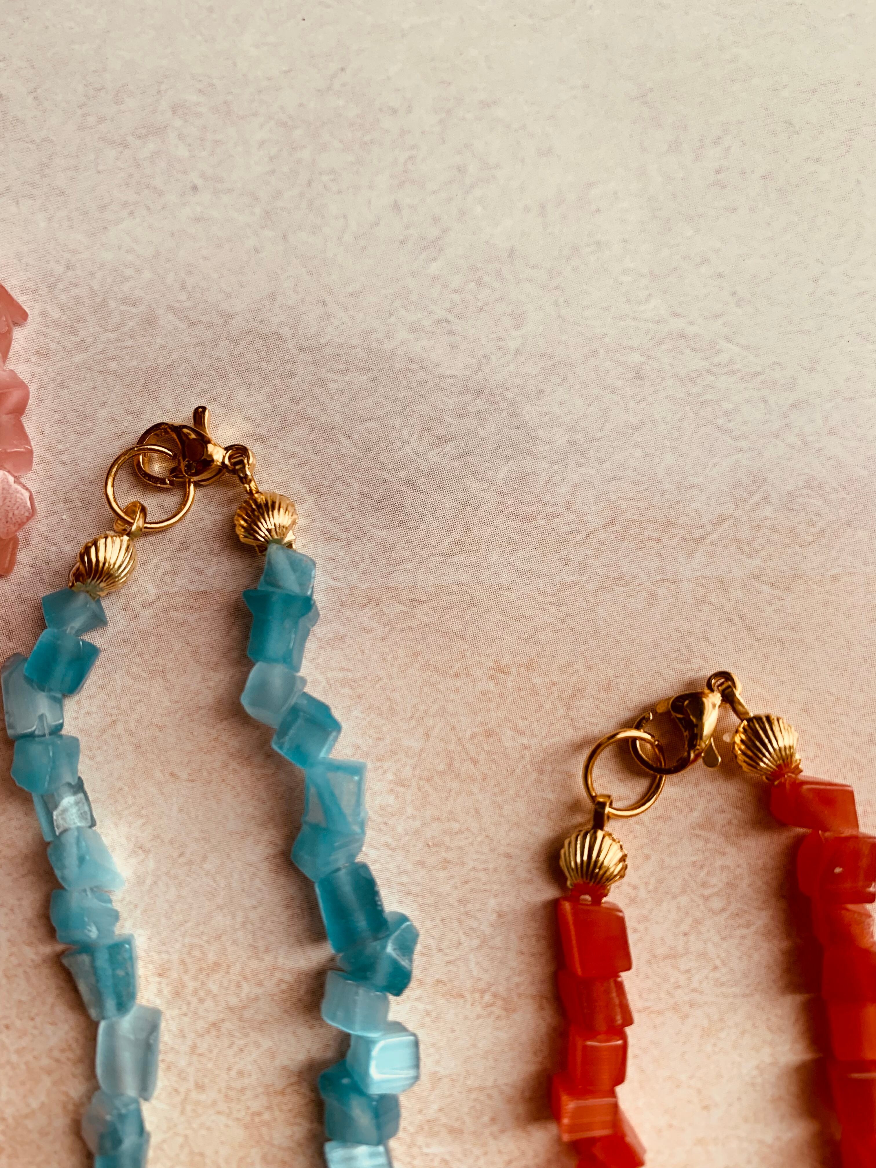 天然石キャッツアイビーズのネックレスです。留め具はシェルの形をしています。A.B.C.D.Eからお選び下さい。