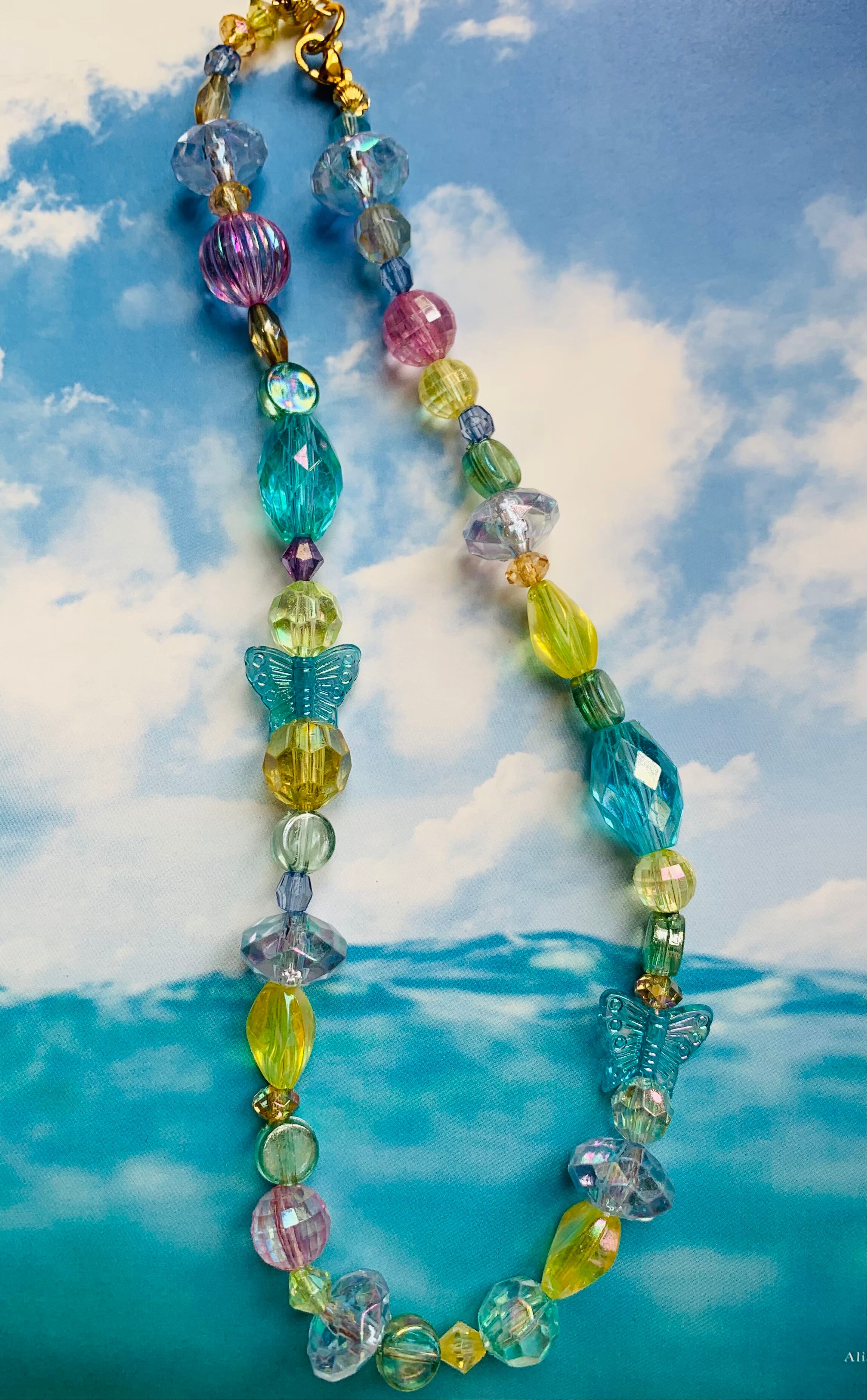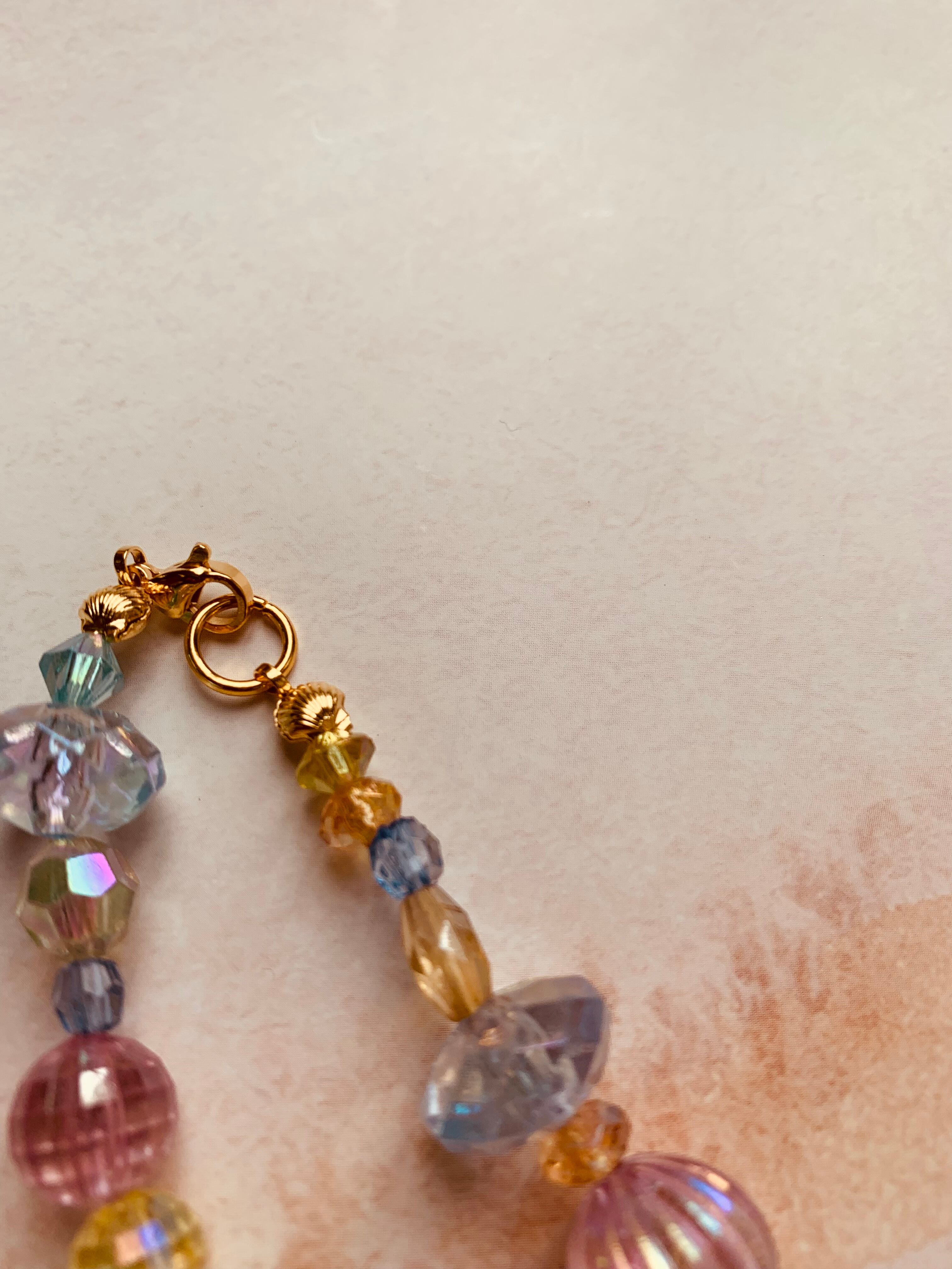 クリアな色々な形のアクリルビーズでできたネックレスです。