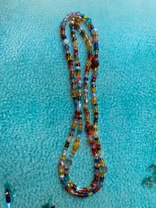 ビーズ、ミッフェリオーレ、パールなどなどがついたロングネックレスです。