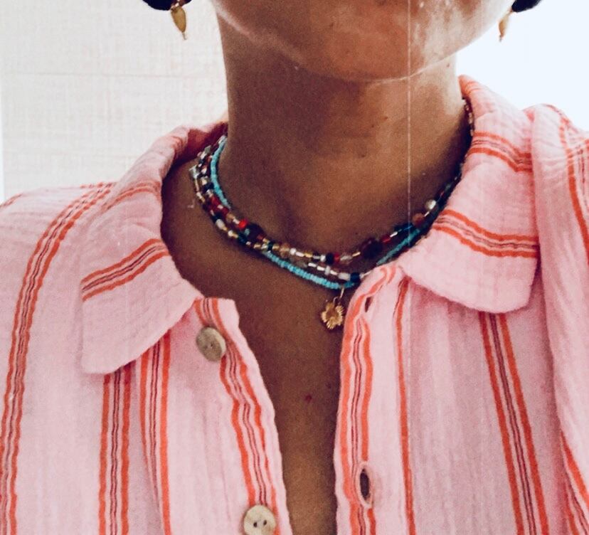 二重にしたり手首に巻いたり使いかたも色々できます。留め具はシェルの形をしています。