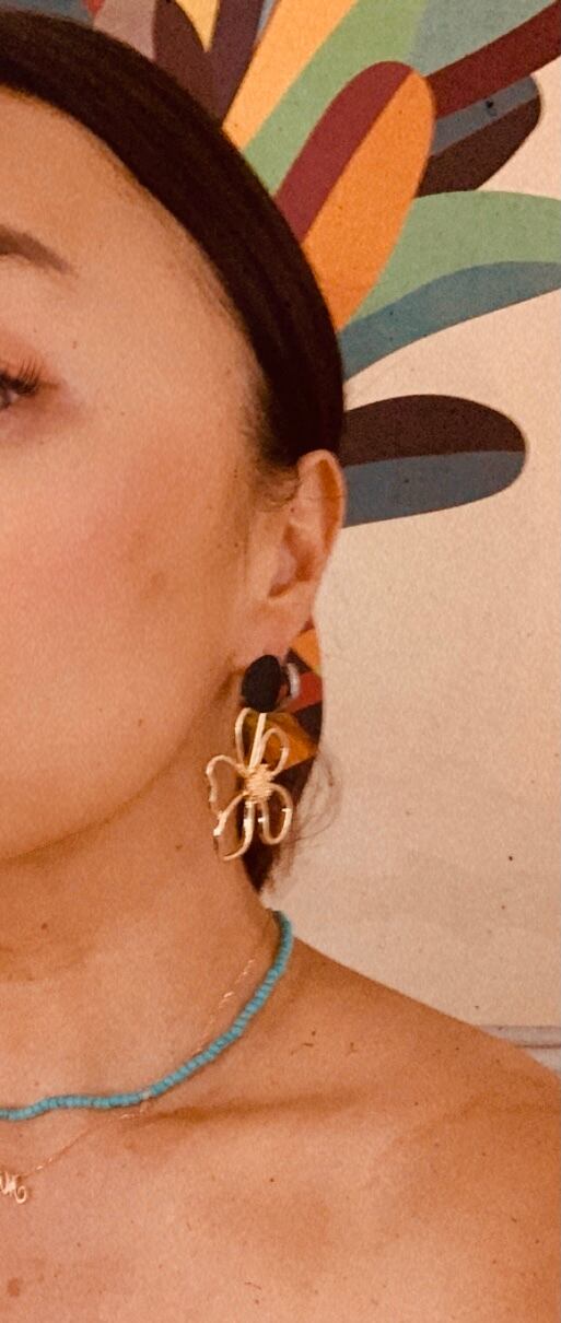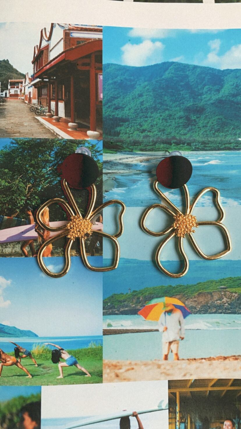 ふちどりの大きなお花の揺れるピアスです。