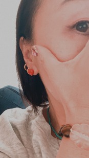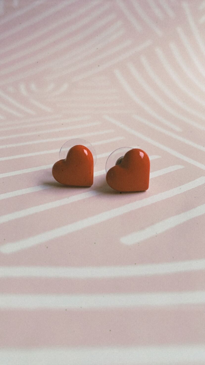 ぷっくりしたハートの赤いハートのスタッドピアスです。