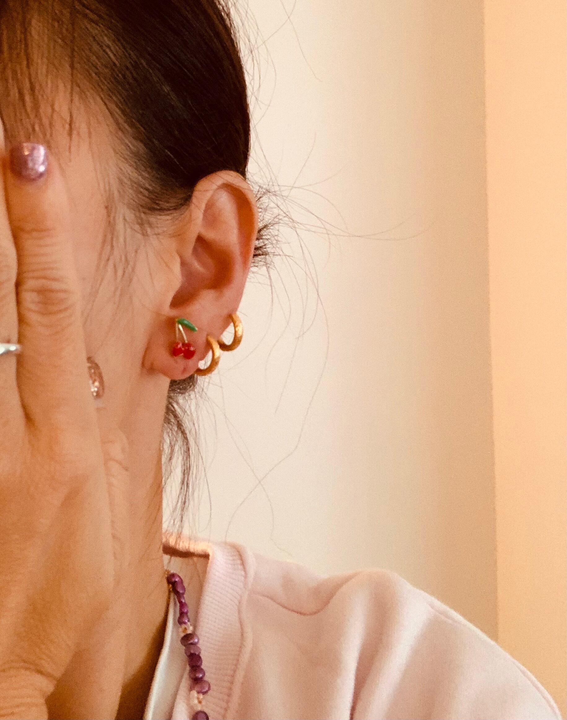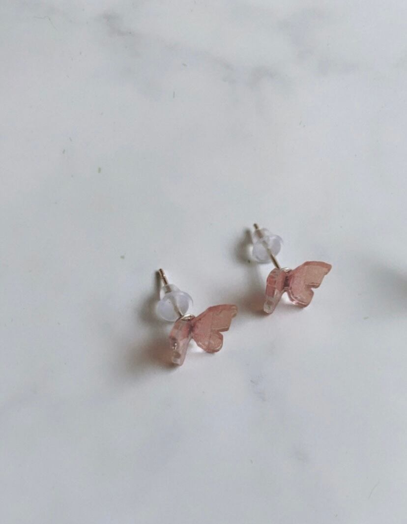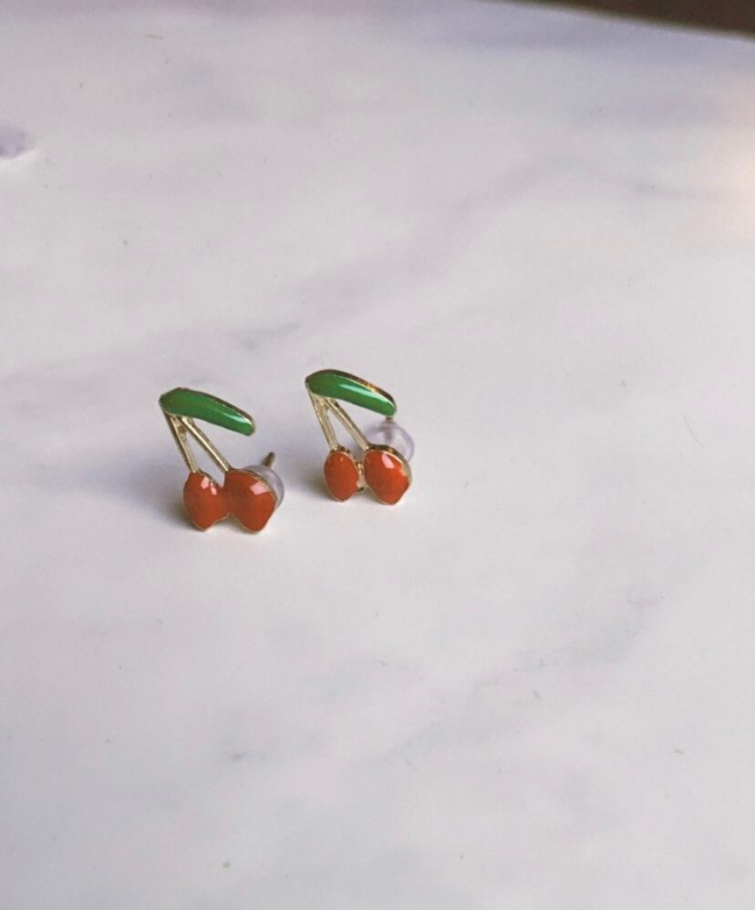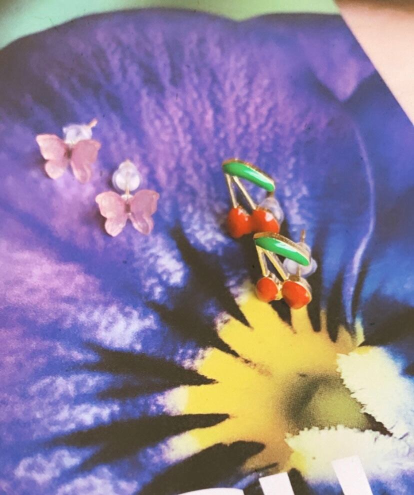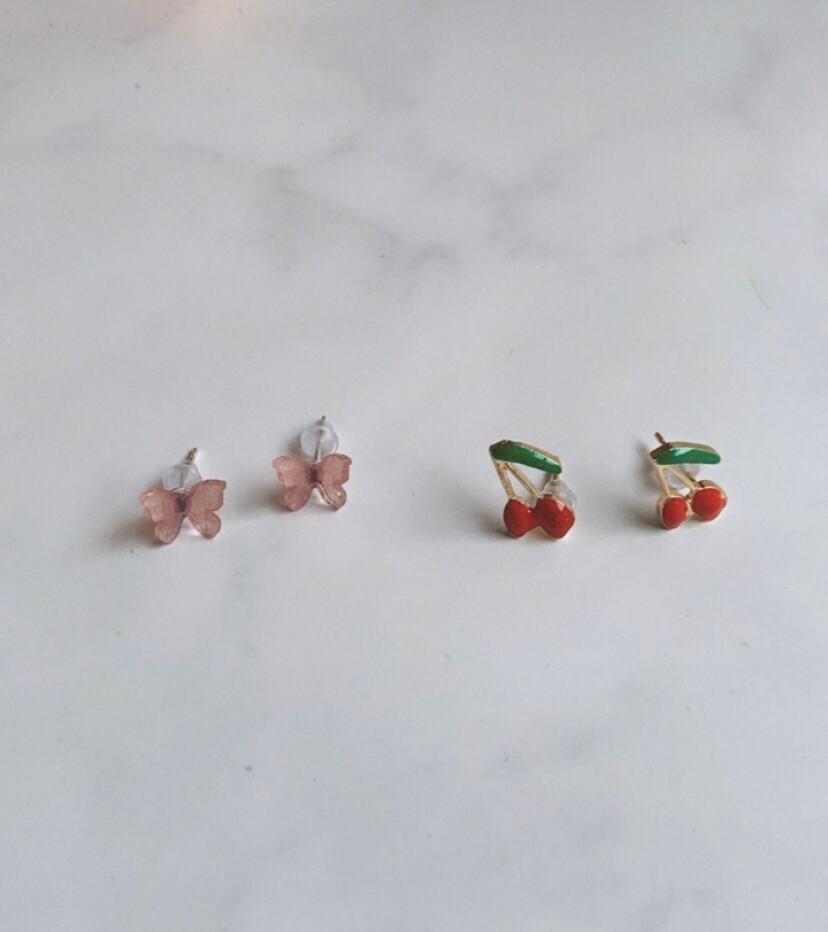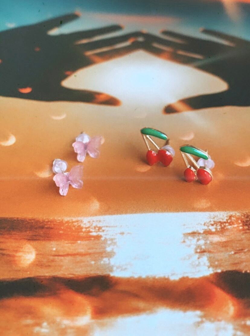 小さなスタッドピアスです。バタフライ、チェリーからお選びください。バタフライは立体感があります!