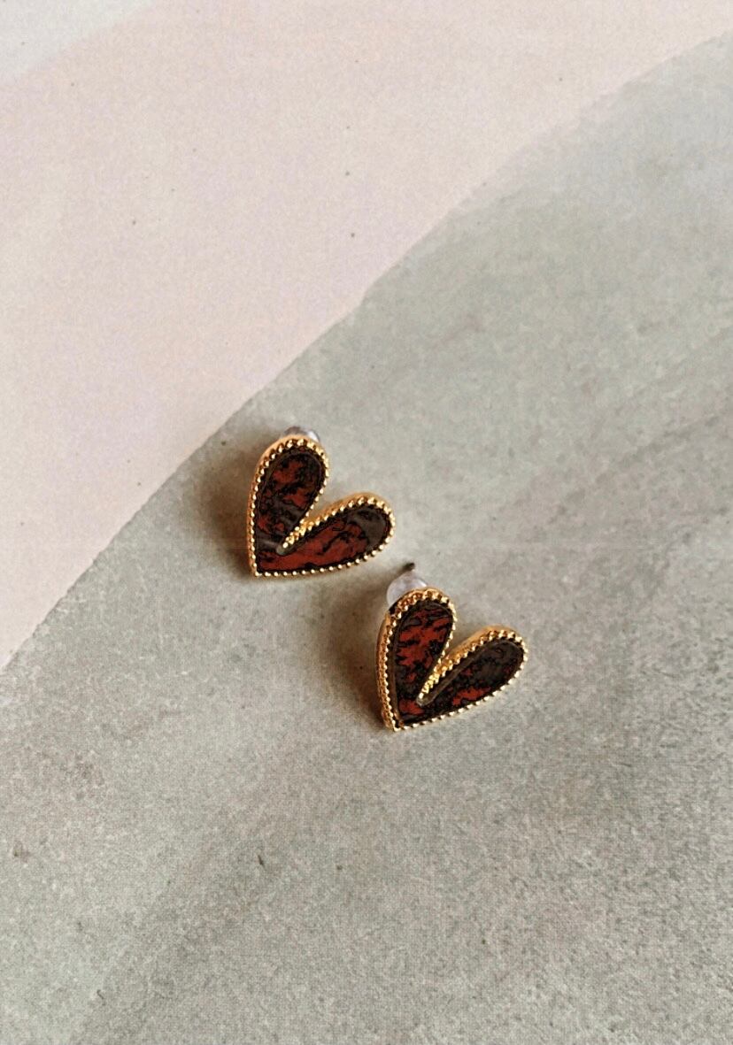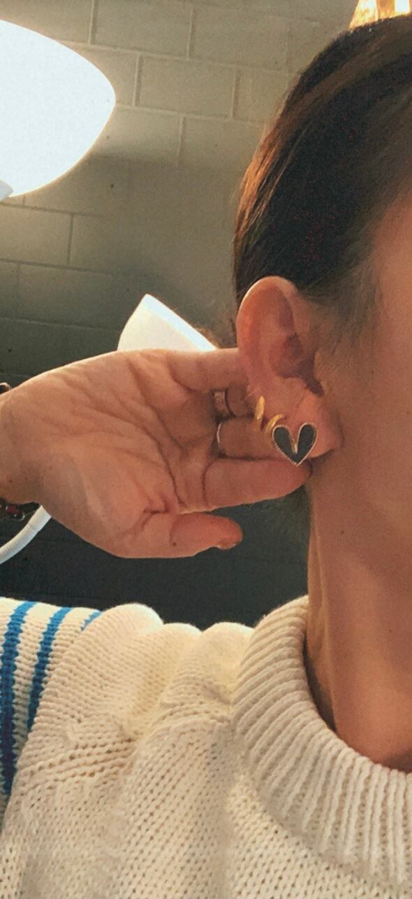 黒に周りがゴールドで縁取りされたハートのピアスです。ハートの形が可愛いです。