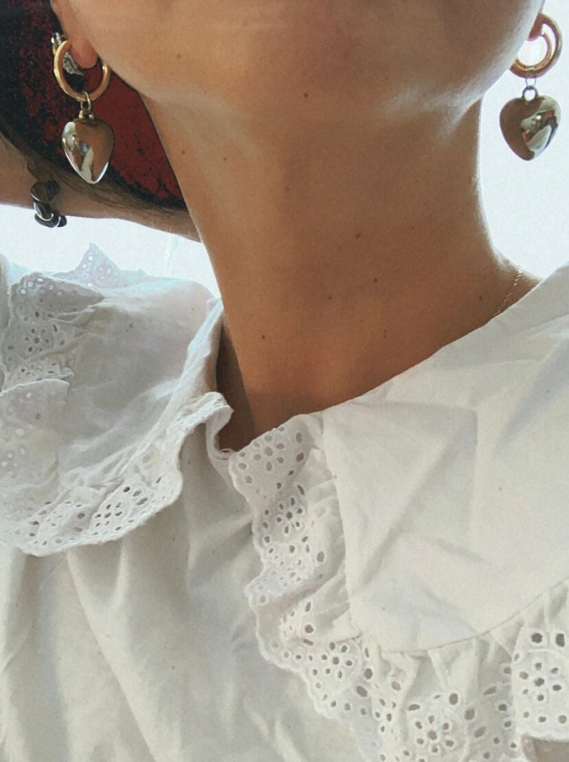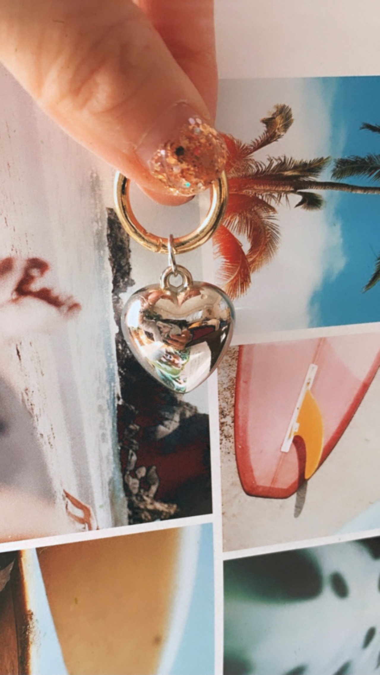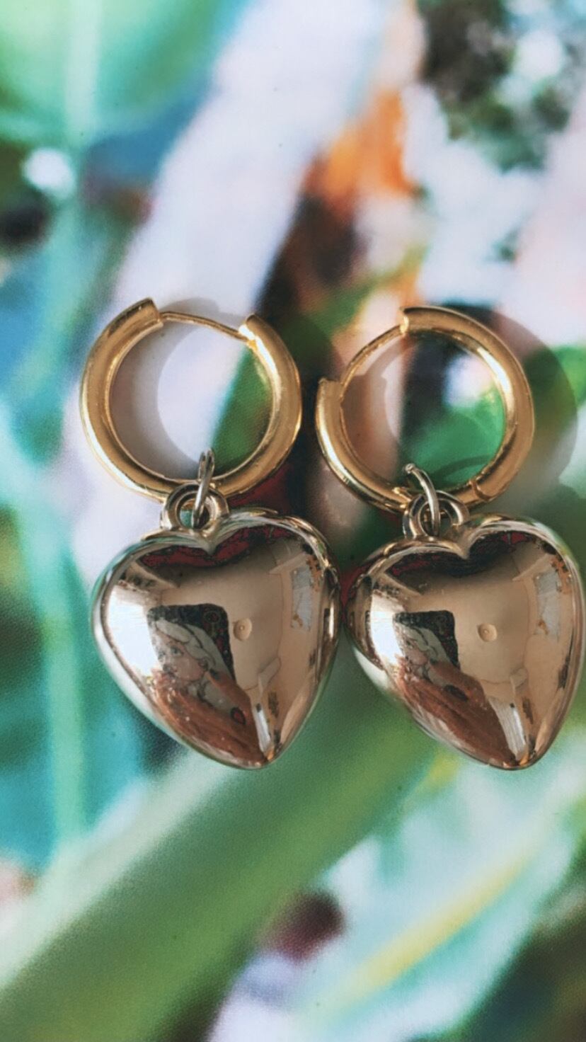 ぷっくりハートのフープピアスです。ポスト部分はステンレスを使用しているのでアレルギーにも安心な素材です。