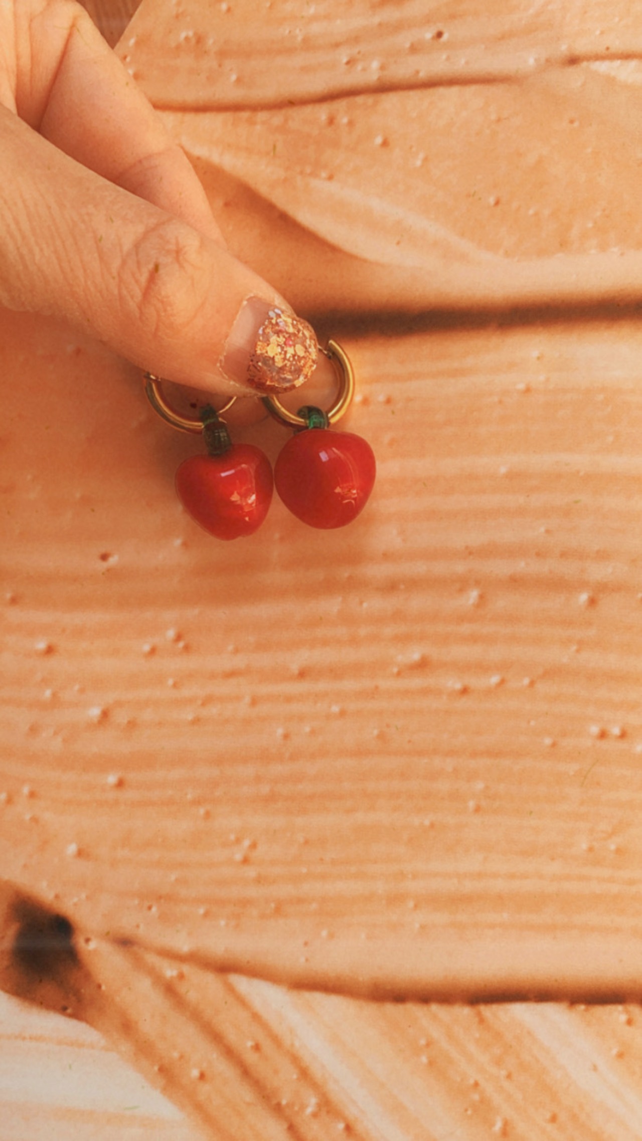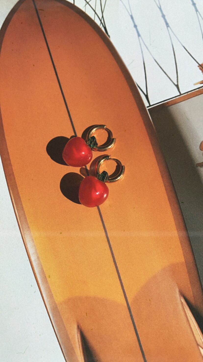 ぷっくりとしたアップルがついたフープピアスです。ピアスはステンレスを使用しているのでサビずにアレルギーにも安心な素材です。