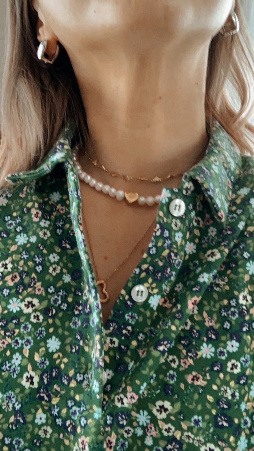 淡水パールにステンレスのハートがついたネックレスです。ステンレスはサビずにアレルギーにも安心な素材です。ハートを斜めにしたり前にしたり留め具もハートなのでそちらを前に持ってきたりなん通りもの使い方ができます!