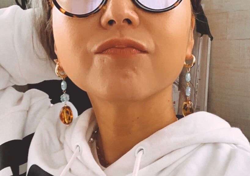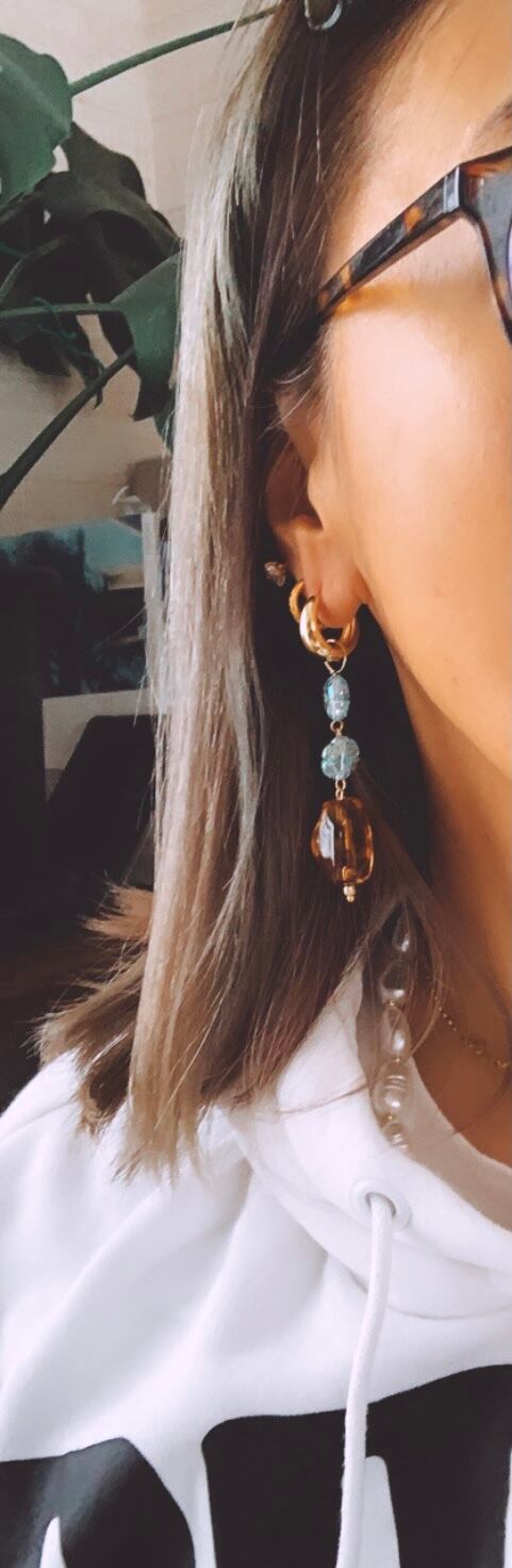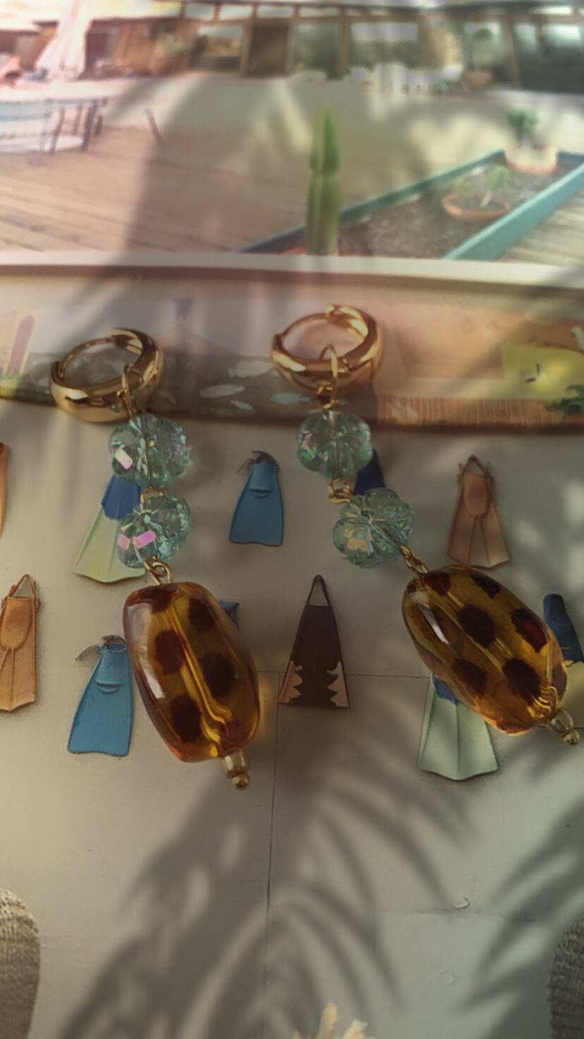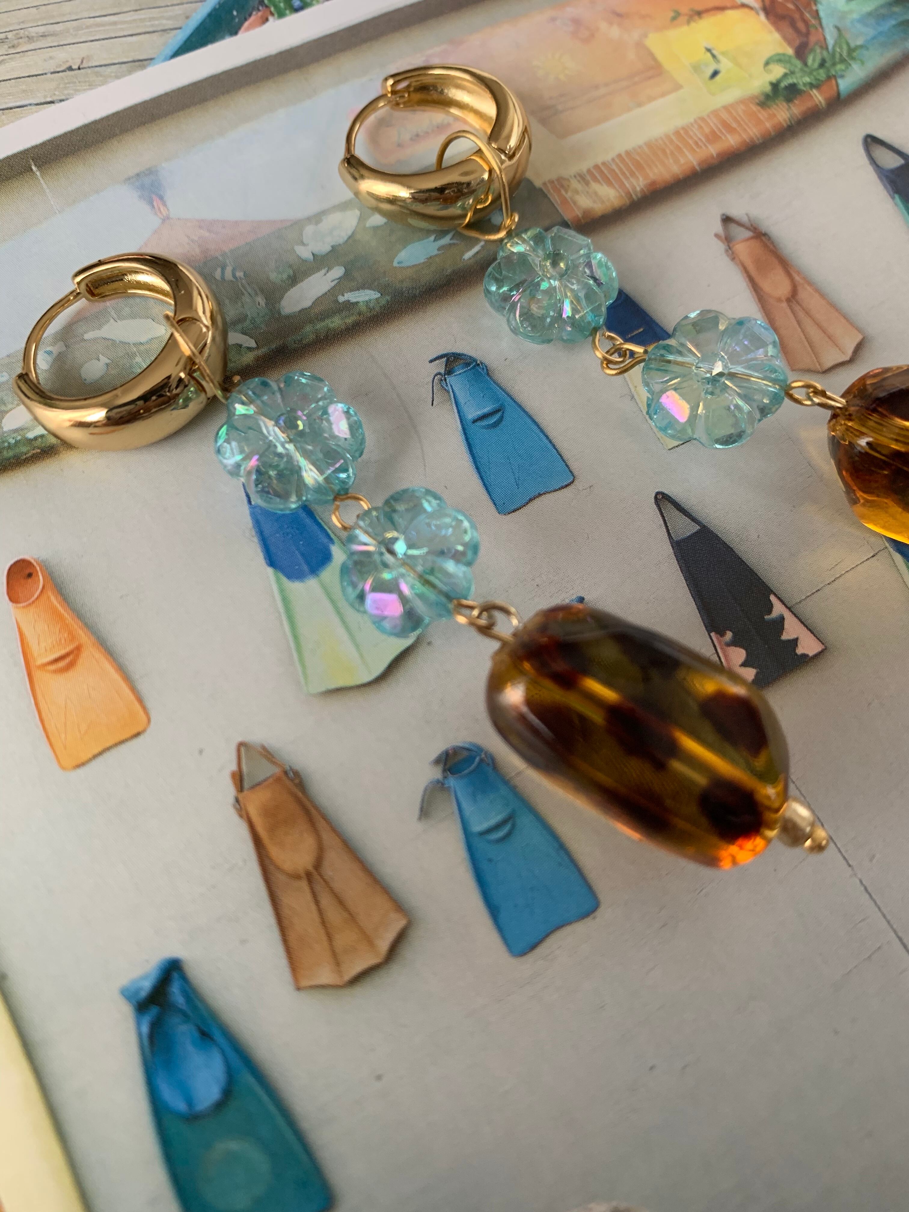 クリアなレオパード柄とお花の揺れるフープピアスです。