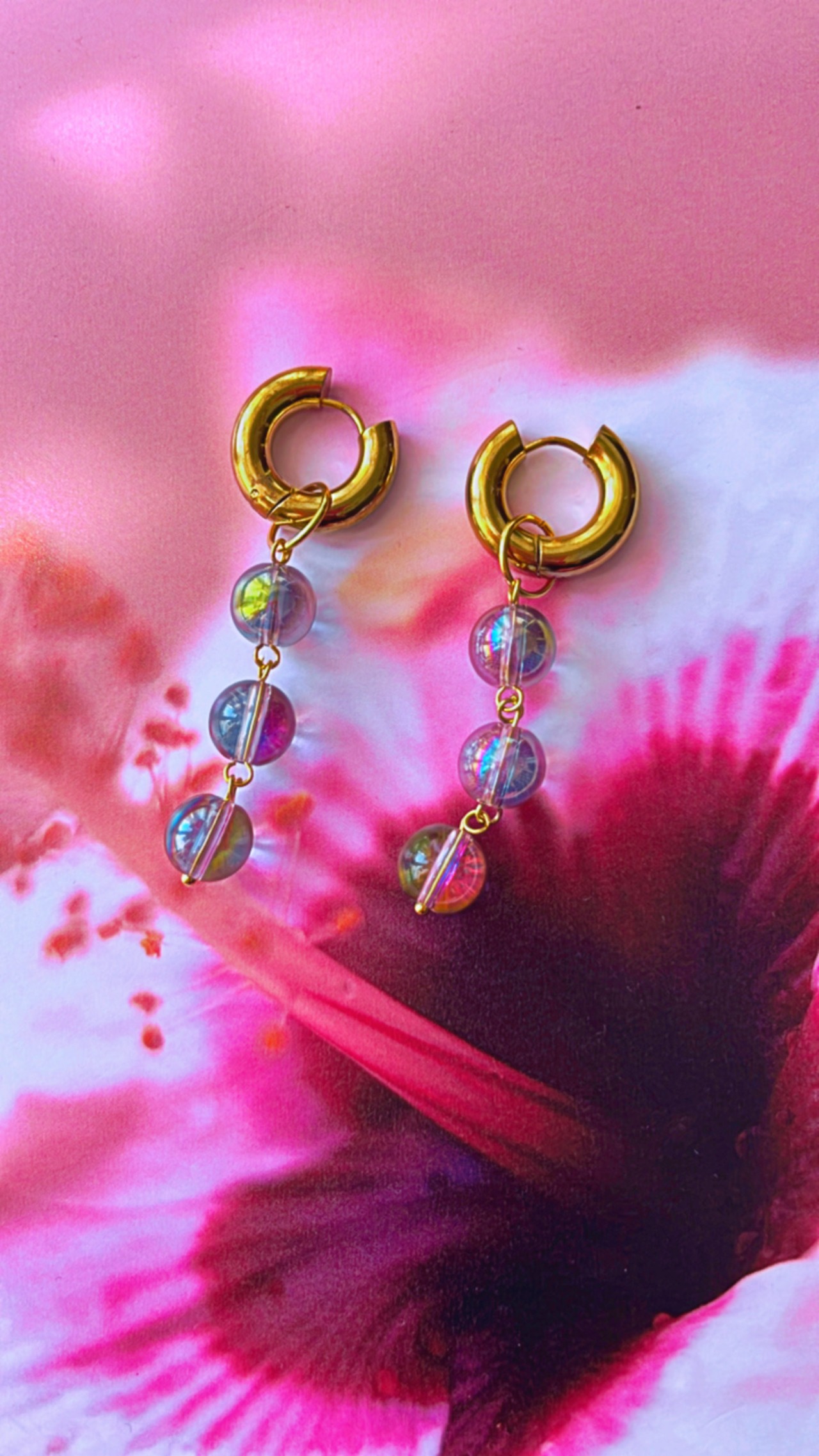 レインボーガラスビーズフープピアス