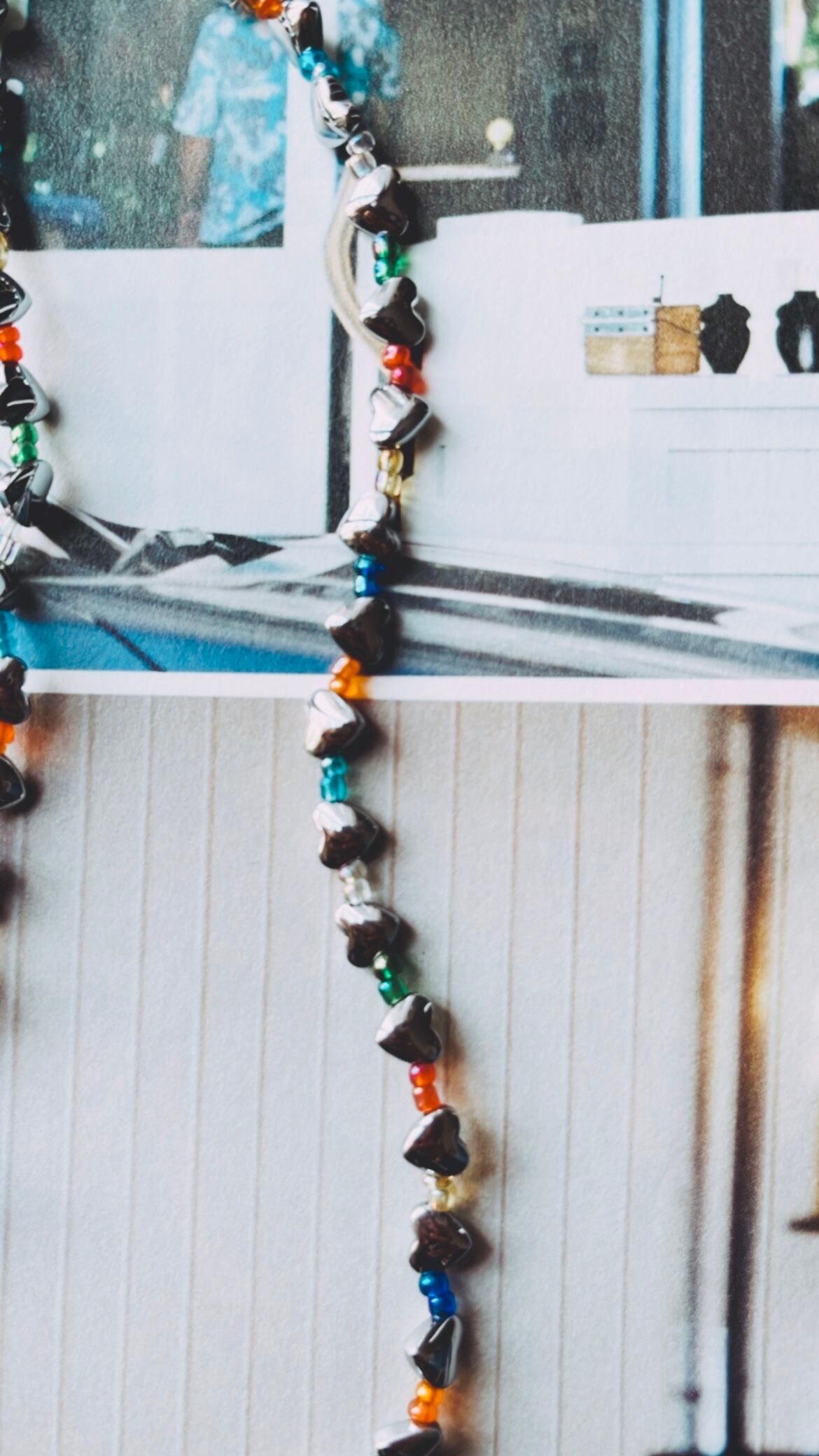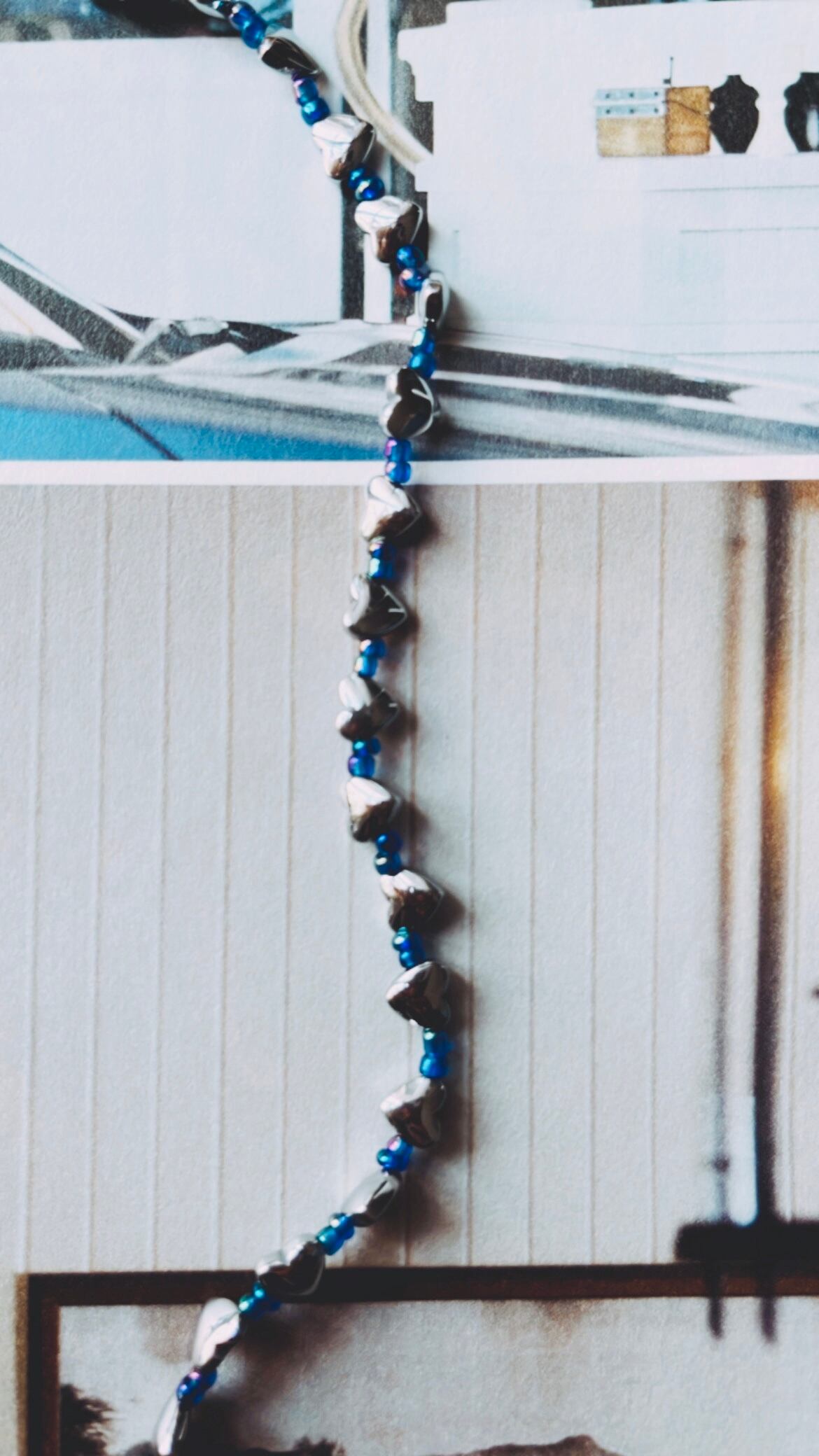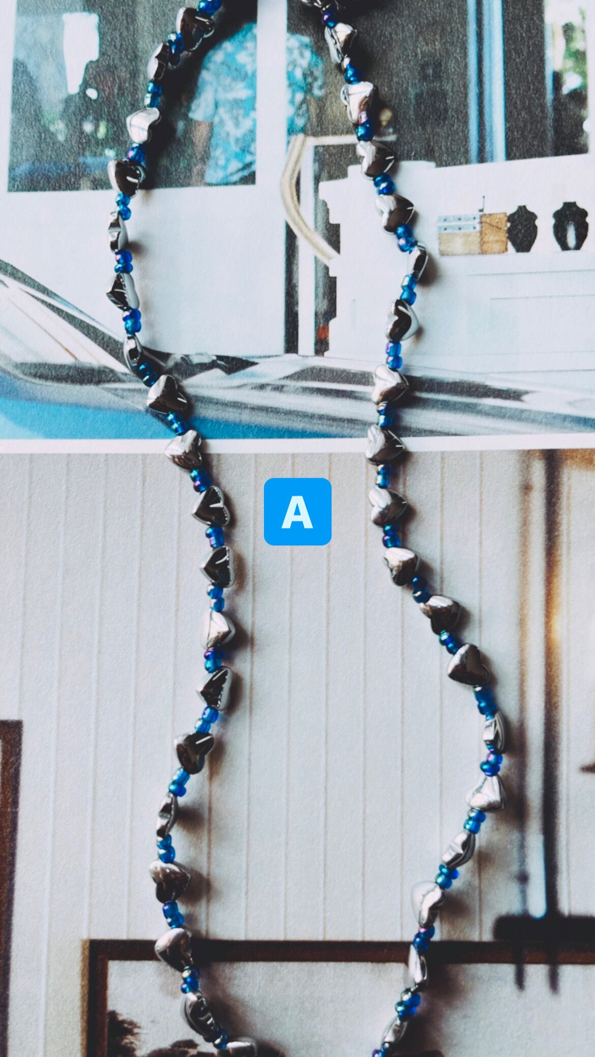 ハートのヘマタイトビーズとクリアなビーズのネックレスです。A.Bからお選びください。