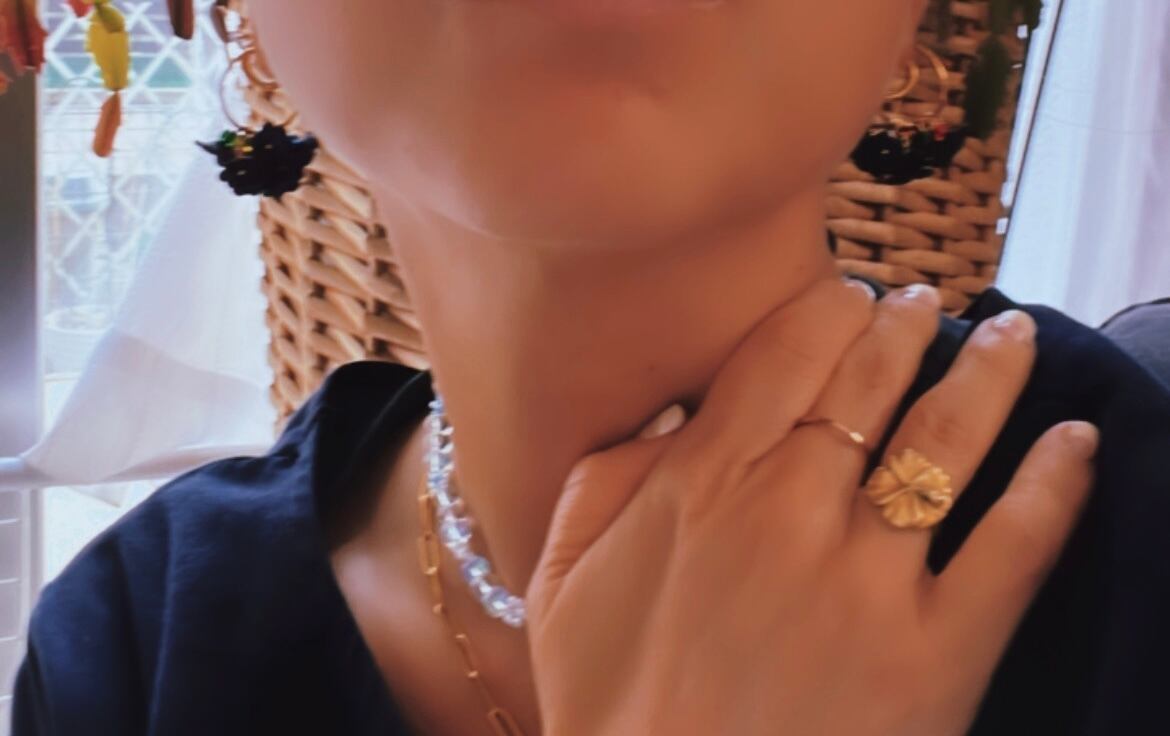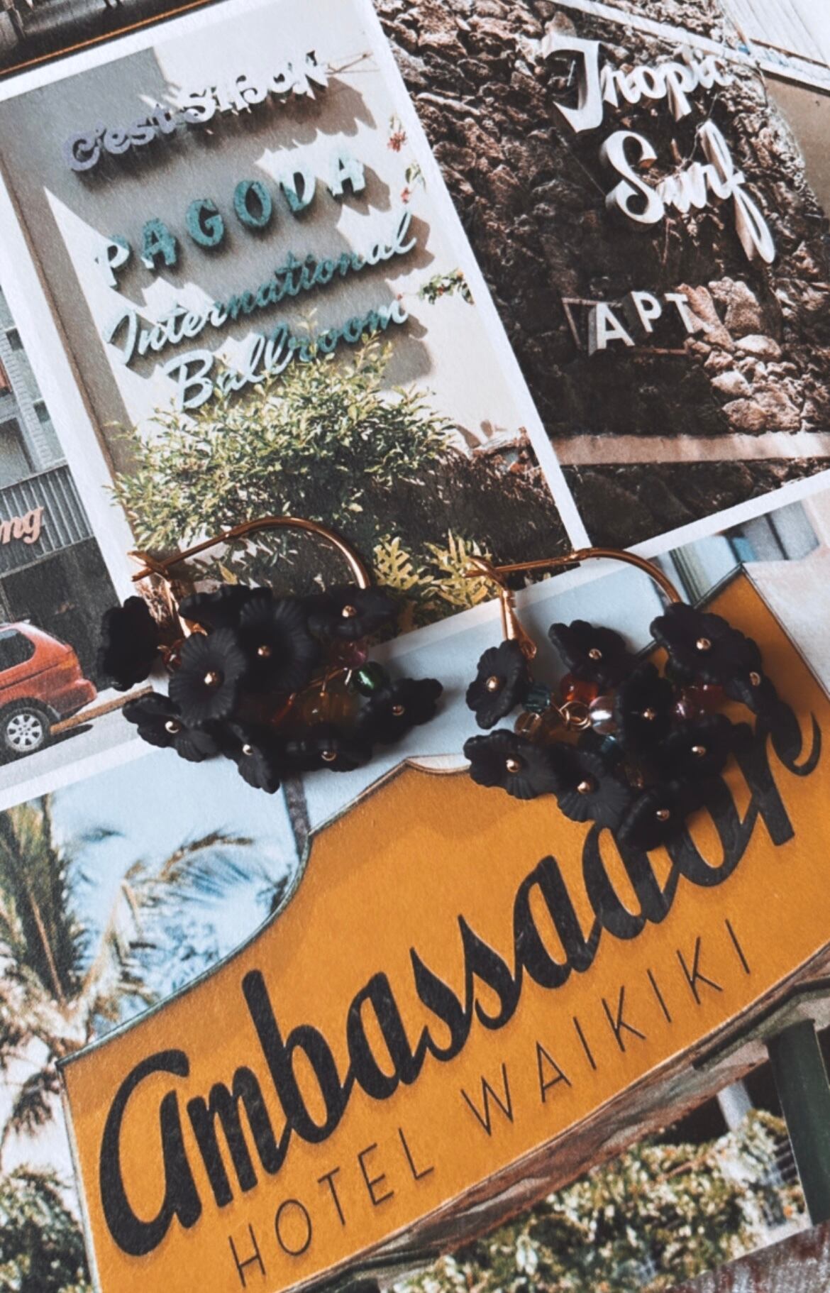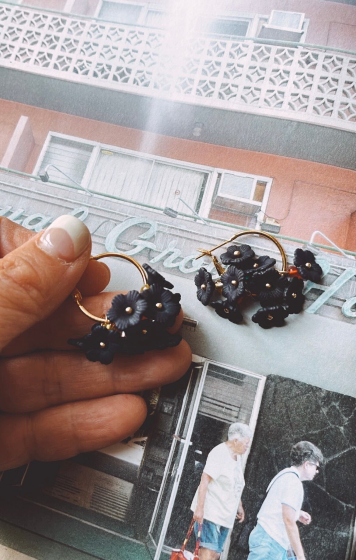 ブラックのお花とビーズがブーケの様になったフープピアスです。