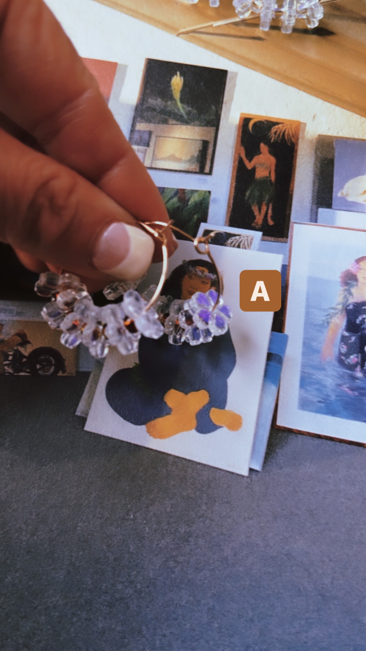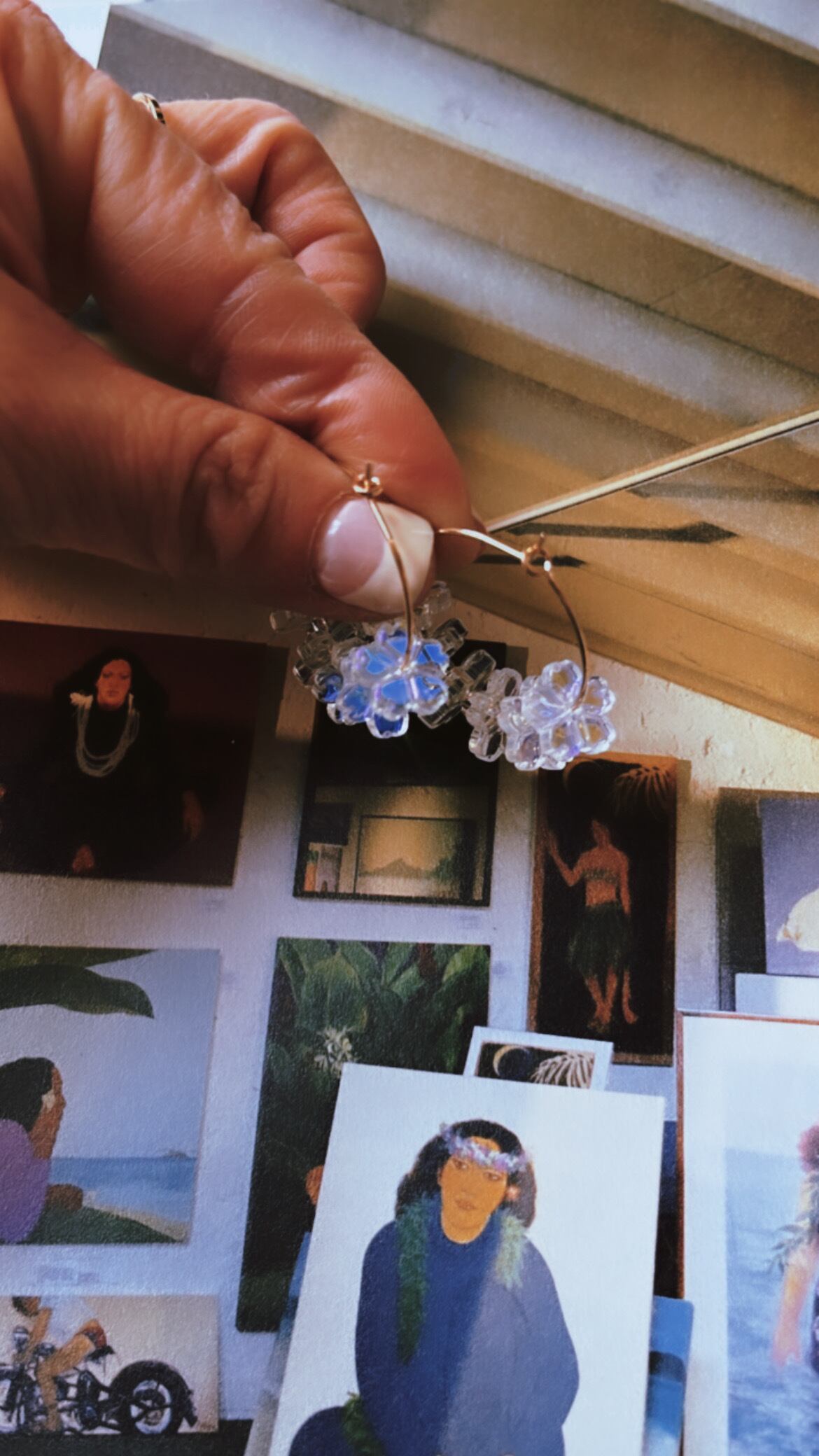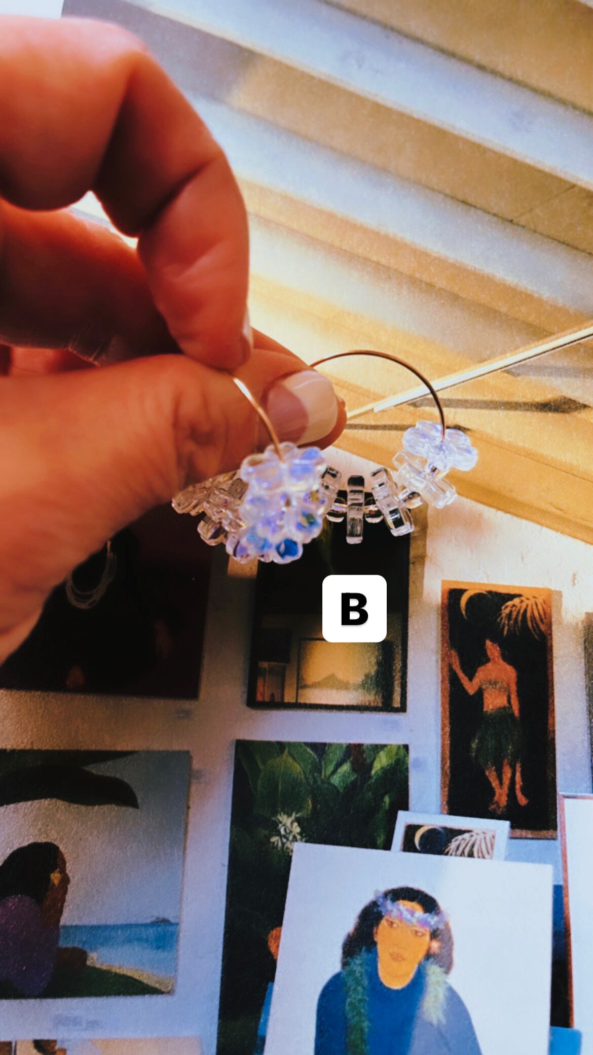 クリアなお花とビーズが連なったフープピアスです。A.Bからお選びください。