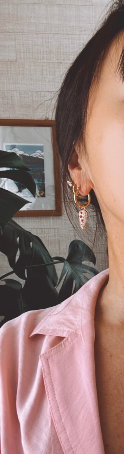 カラフルなドットで縁取られたガラスハートのフープピアスです。ピアスはステンレスを使用しているのでサビずにアレルギーにも安心な素材です。
