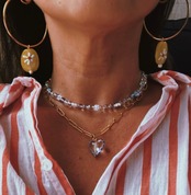 フラワージャワビーズとパールのビッグフープピアス ステンレス