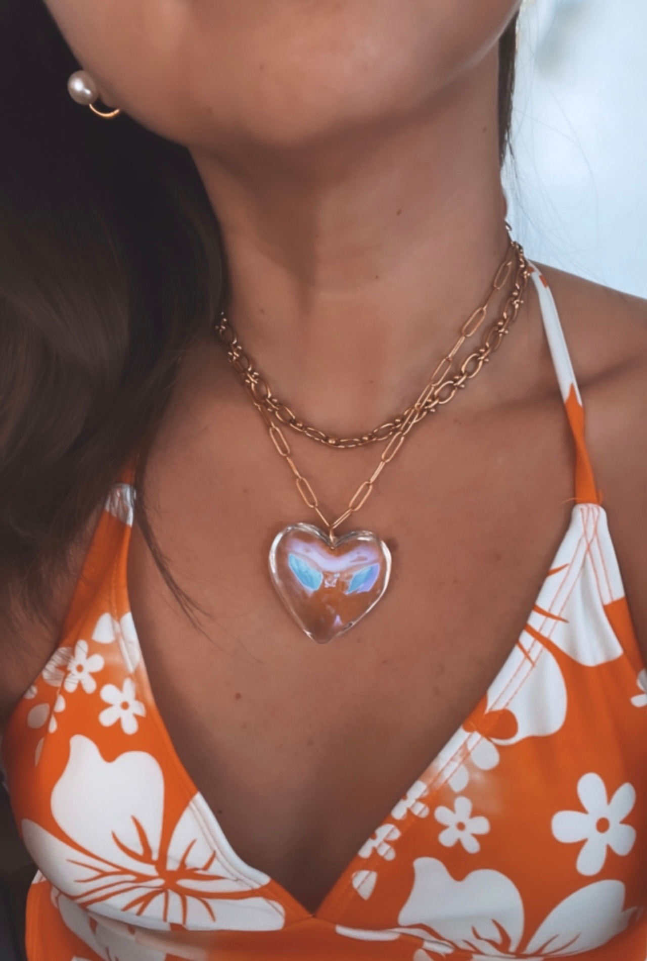 デザインが可愛いチェーンネックレスです。そのままつけても存在感でます。重ねてつけても可愛いです。ステンレスを使用しているのでサビずにアレルギーにも安心な素材です。